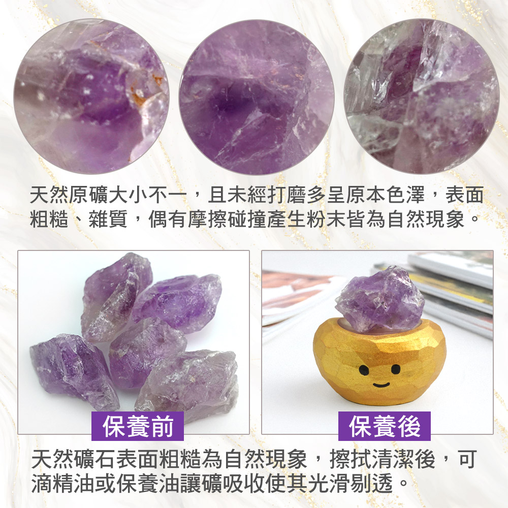 2.水晶礦石從大塊材料敲下,每個尺寸大小、形狀色澤皆不一樣,屬天然正常狀況。