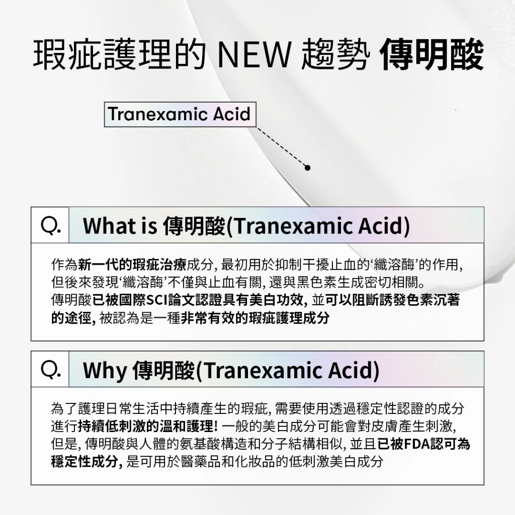 阻止黑色素滲透到真皮層的傳明酸;