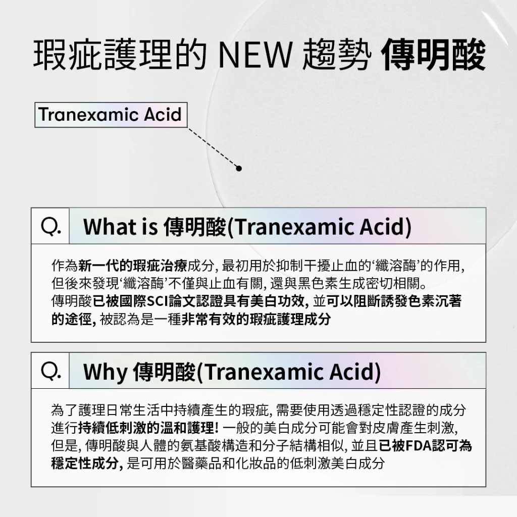 阻止黑色素滲透到真皮層的傳明酸;
