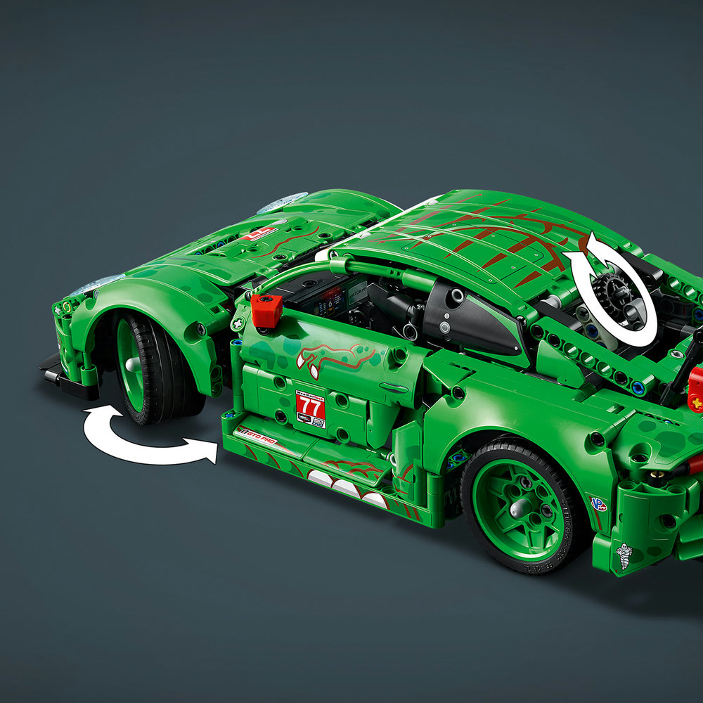 賽車兒童玩具-用這款樂高® 科技系列 Porsche 911 GT3 R REXY AO Racing 賽車(42224)拼砌玩具模型盒組為 11 歲以上男孩與女孩發動無限樂趣