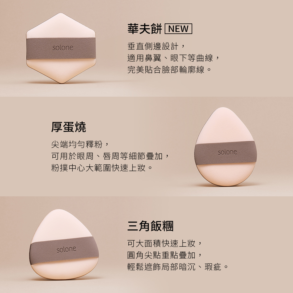 •彈力雙面舒芙蕾海綿 厚蛋燒•彈力雙面舒芙蕾海綿 三角飯糰•彈力雙面舒芙蕾海綿 小飯糰•彈力雙面舒芙蕾海綿 華夫餅•彈力雙面舒芙蕾海綿 小雞蛋•海綿專屬收納盒 方形 2入•彩妝工具專用水洗清潔液 1入