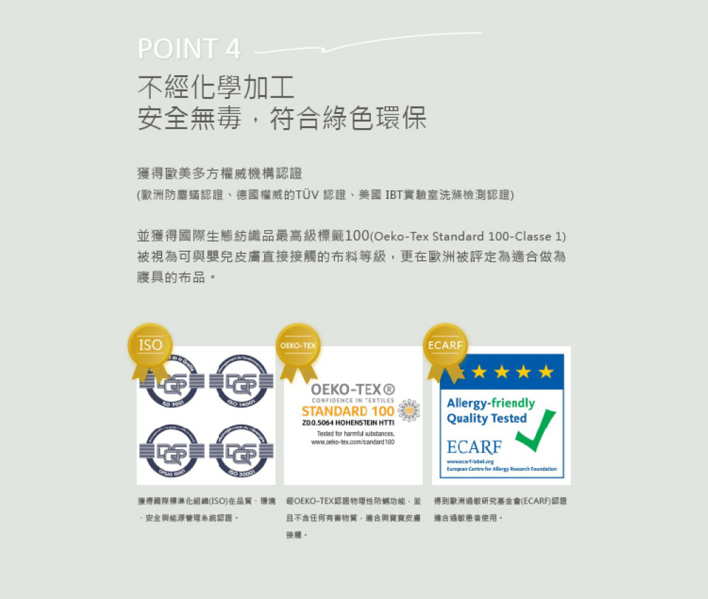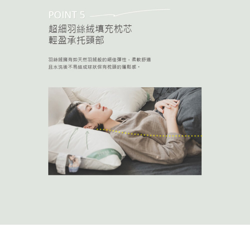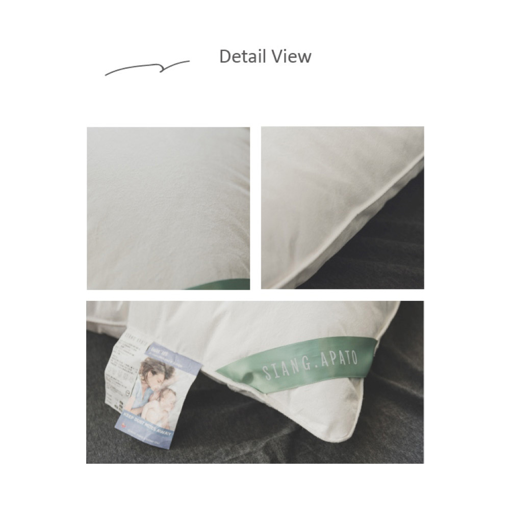 「早上起床不再哈啾哈啾了。」◆ 表布:70% Polyester 聚脂纖維 + 30% 錦綸◆ 填充:100% Polyester 聚脂纖維 (細羽纖)◆ 德國EVOLON 醫療級專利防螨材質,高度約16-17cm ※本產品可直接放入洗衣機清洗