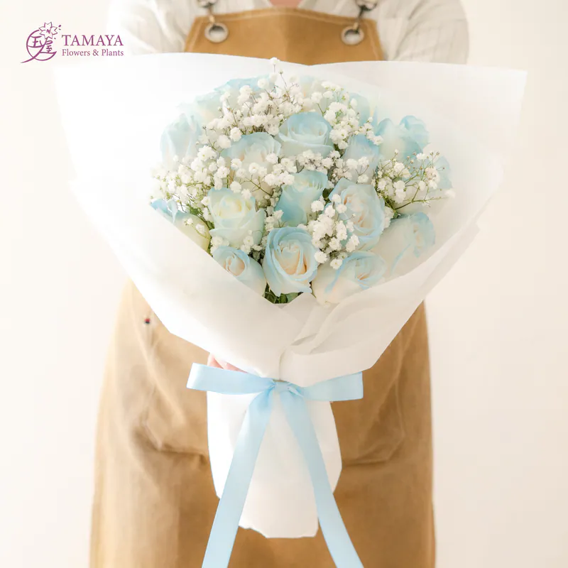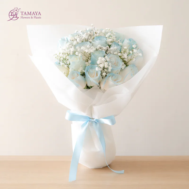 進口藍白漸層玫瑰花束,如夢似幻,