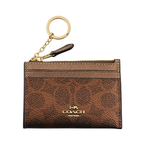 [平輸版] 【COACH】金屬珠光古銅色C Logo PVC 拼接防刮皮前卡夾鑰匙零錢包 真品平輸 | NearMe | 線上送禮平台『獨家支援 收禮者改選禮物』