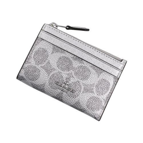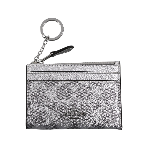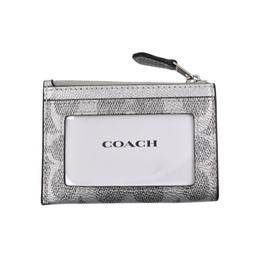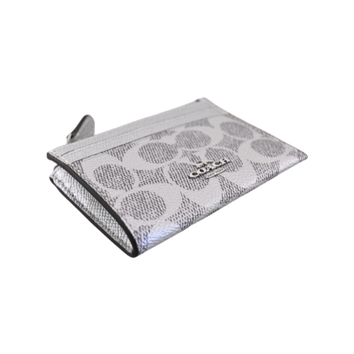 [平輸版] 【COACH】金屬珠光銀色C Logo PVC 拼接防刮皮前卡夾鑰匙零錢包 真品平輸 | NearMe | 線上送禮平台『獨家支援 收禮者改選禮物』