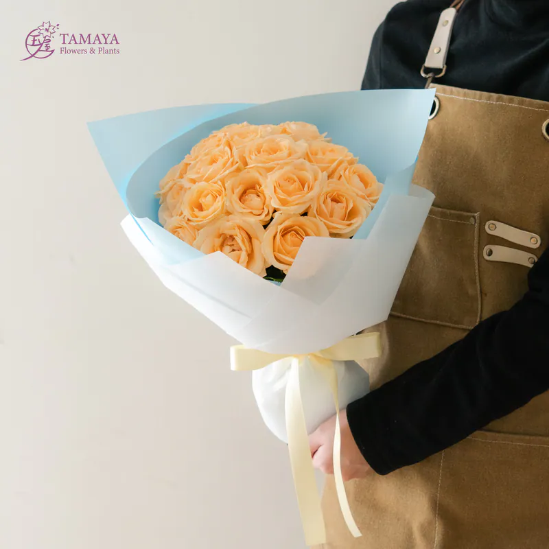 淡雅的香檳色玫瑰象徵著低調而深沉的愛情,不高調張揚,有著專一、忠誠的溫暖樸實感。18朵玫瑰的含義是真誠、坦白。適合送給溫暖柔和的她/他。-尺寸參考 18朵|H40xW30xD20(誤差±5cm) -使用花材:國產香檳玫瑰。