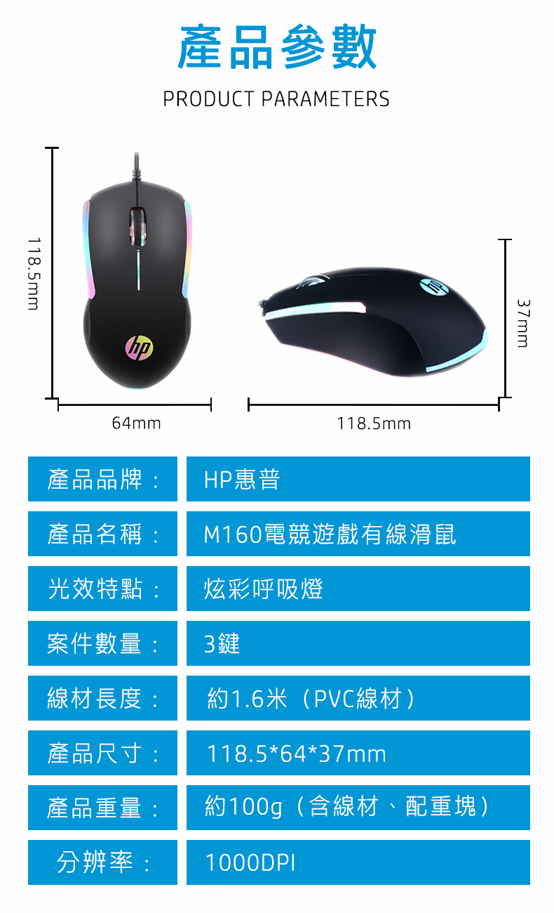 HP 惠普 M160電競遊戲有線滑鼠 送精美贈品 G6