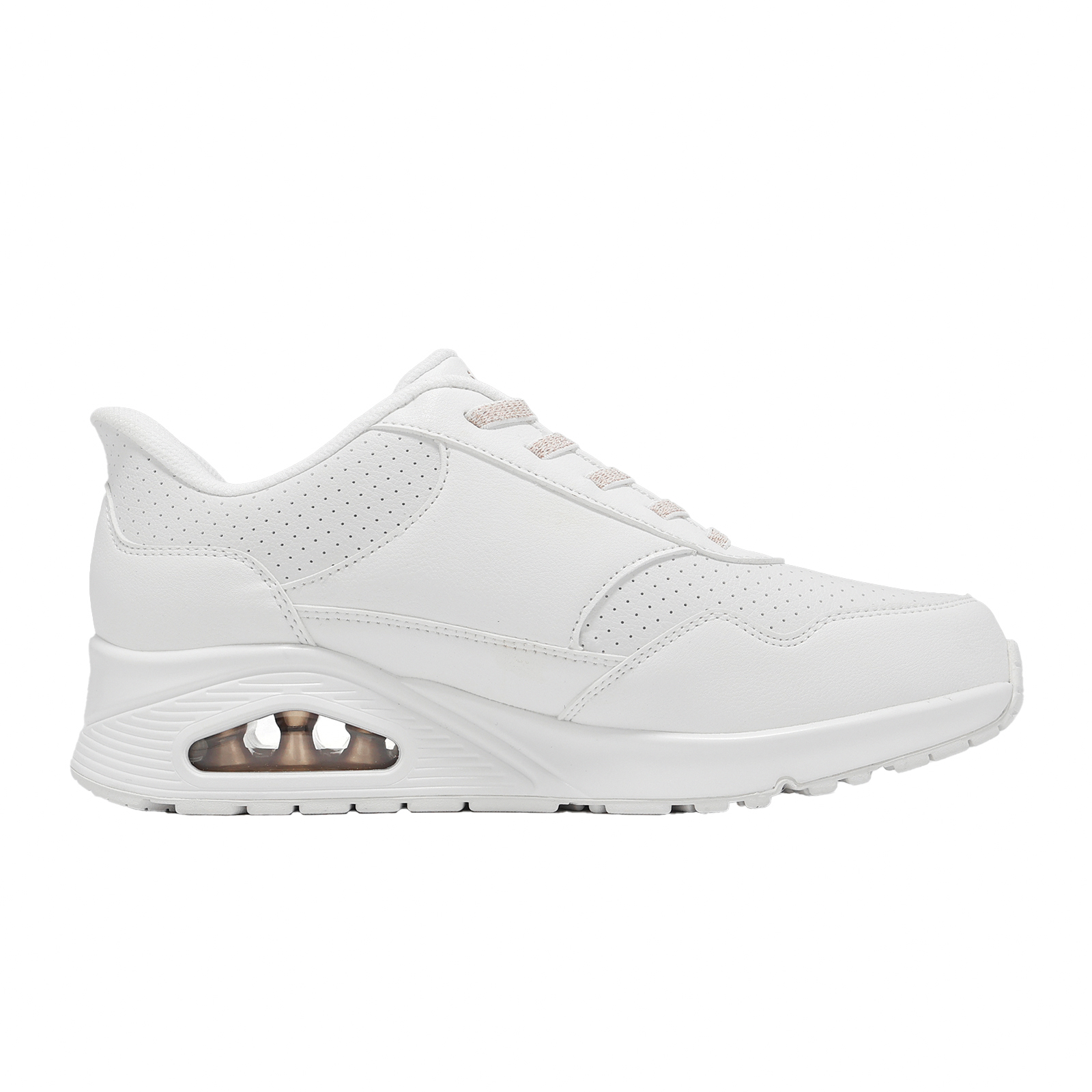 品牌: SKECHERS型號: 177118-WWHT品名: Uno Wide Slip-Ins版型: 版型正常UNO系列,街頭時尚氣墊運動鞋,可視性氣墊供良好的支撐緩衝性,同時也增添時尚感,配備SLIP-INS