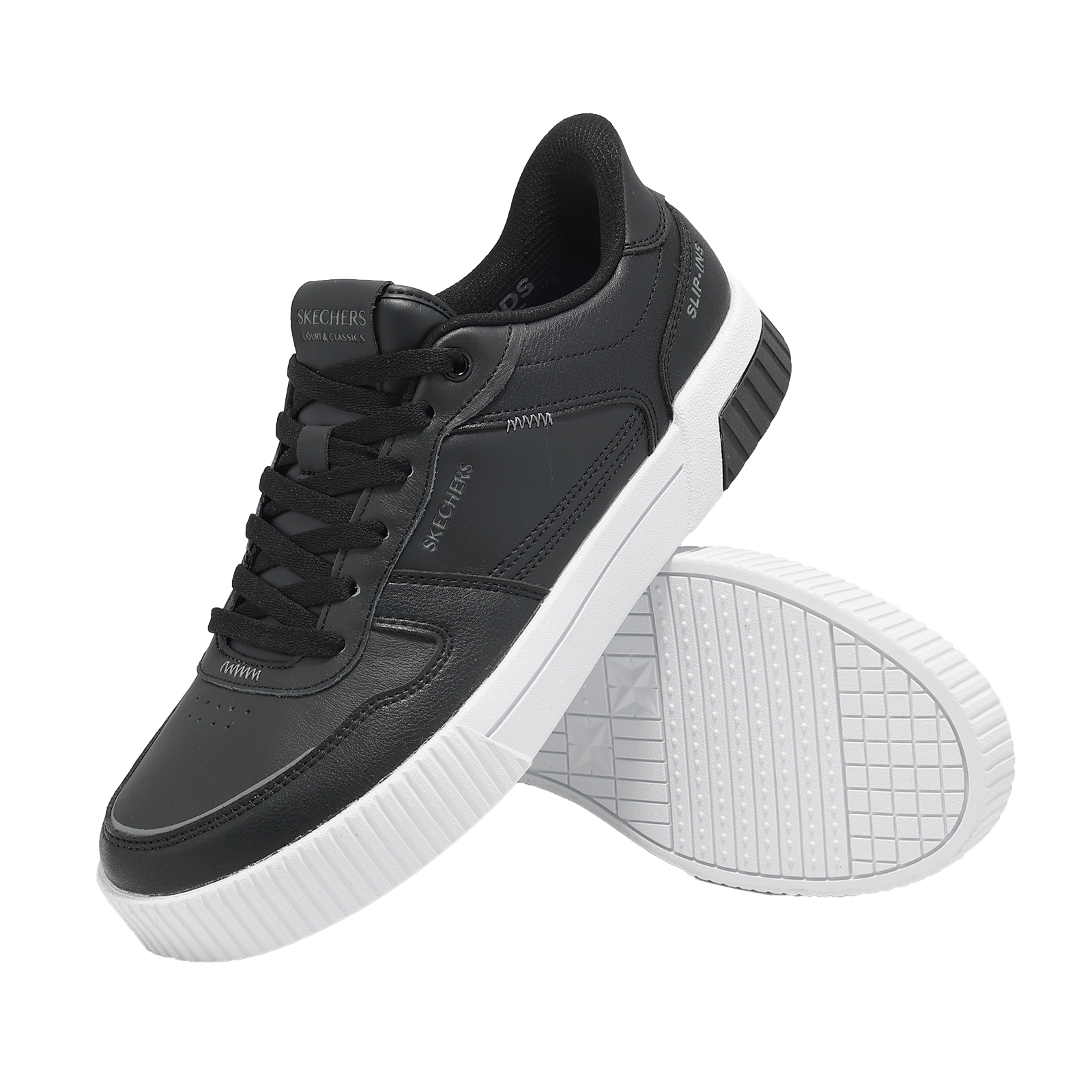 品牌: SKECHERS型號: 254140-BKW品名: Jade Slip-Ins版型: 版型正常JADE 系列,休閒街頭板鞋款,結合了簡約時尚的外觀和潮流復古的設計,無論是搭配休閒裝或時尚服飾,這款板鞋都是您完美的第一選擇。