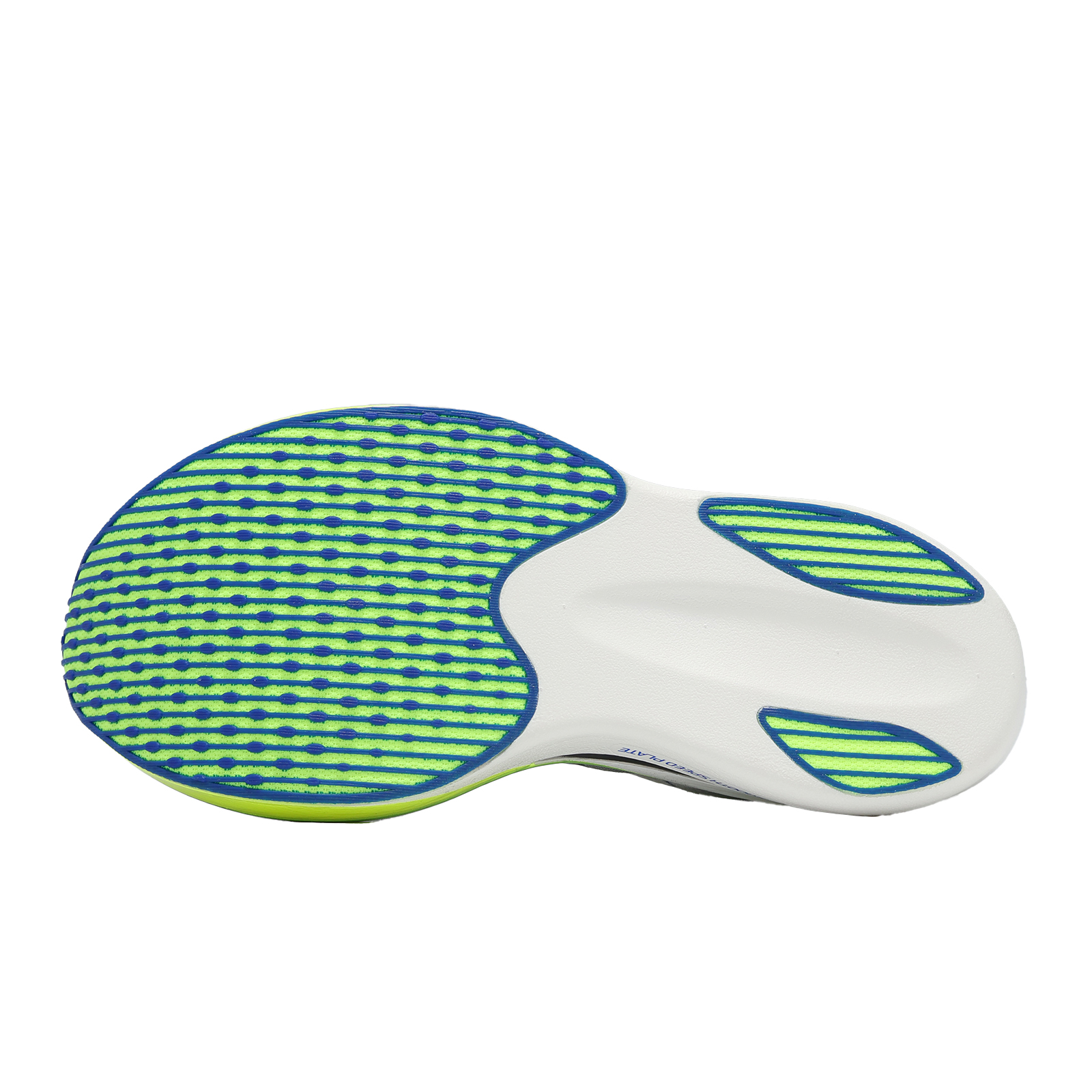 * 採用 3D 全掌碳纖維板,維持高回彈,同時強化穩定性;平板鞋底設計,提供高穩定性與支撐力。