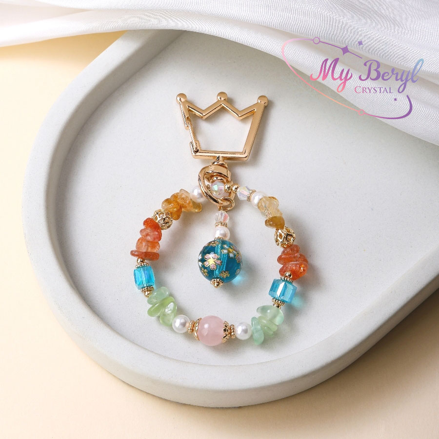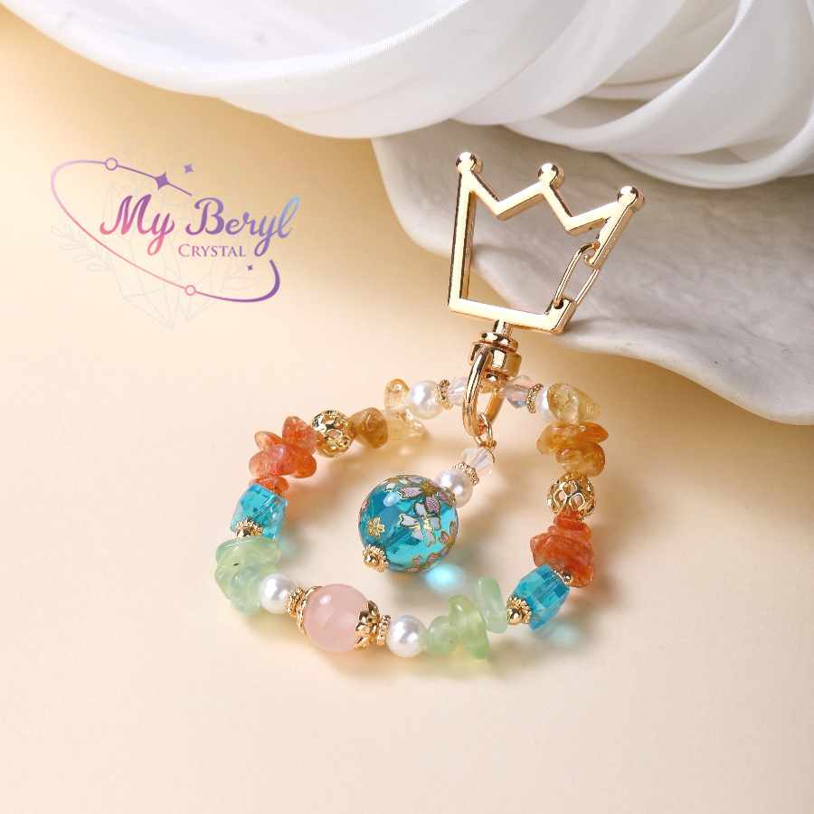 💛 黃水晶:財富與信心之石,帶來正能量與豐盛機會。☀️ 金太陽石:象徵勇氣與熱情,幫助你自信發光、綻放光彩。💚 葡萄石:療癒與信任之石,讓心靈平靜,生活更順遂。💗 粉晶:愛與溫柔的能量,增強人緣與戀愛運。💠 琉璃珠:象徵幸福與祝福,如夢似幻的透明色彩守護美好心願。🤍 貝珠:帶來溫柔包容的力量,調和整體氣場。