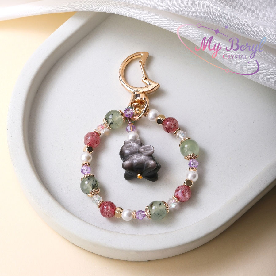 名稱 :【My Beryl 水晶】銀曜石小馬 × 草莓晶 × 葡萄石 × 貝珠|勇氣與幸運的守護吊飾