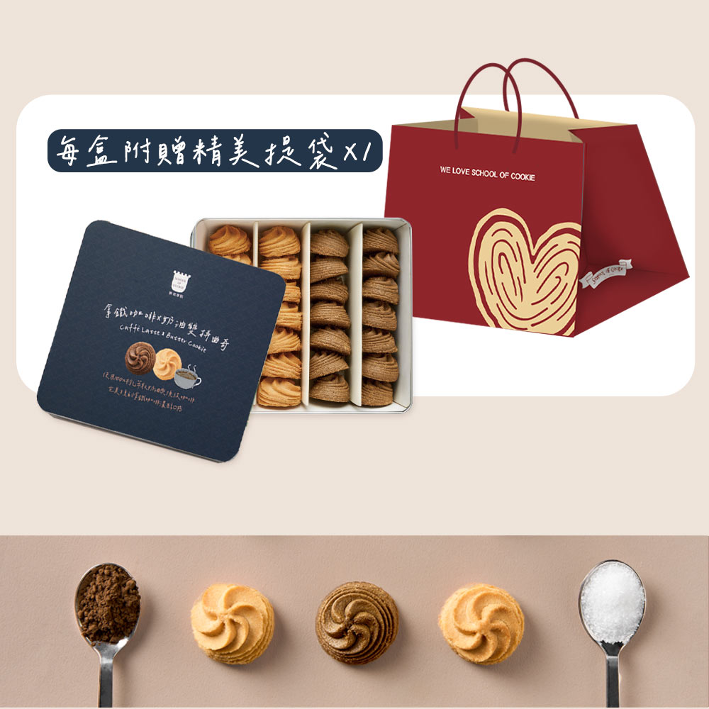 【台灣優格餅乾學院】拿鐵咖啡x奶油雙拼曲奇鐵盒