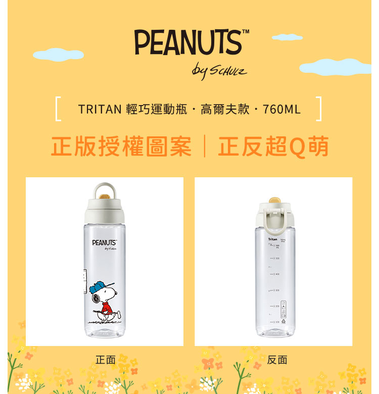 【義大利BLACK HAMMER 】SNOOPY史努比運動系列 TRITAN 輕巧運動瓶760ml-高爾夫款