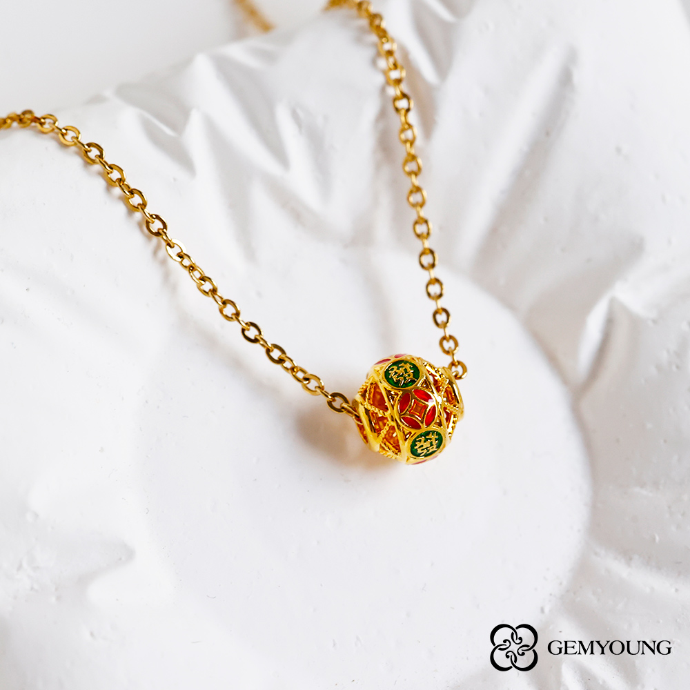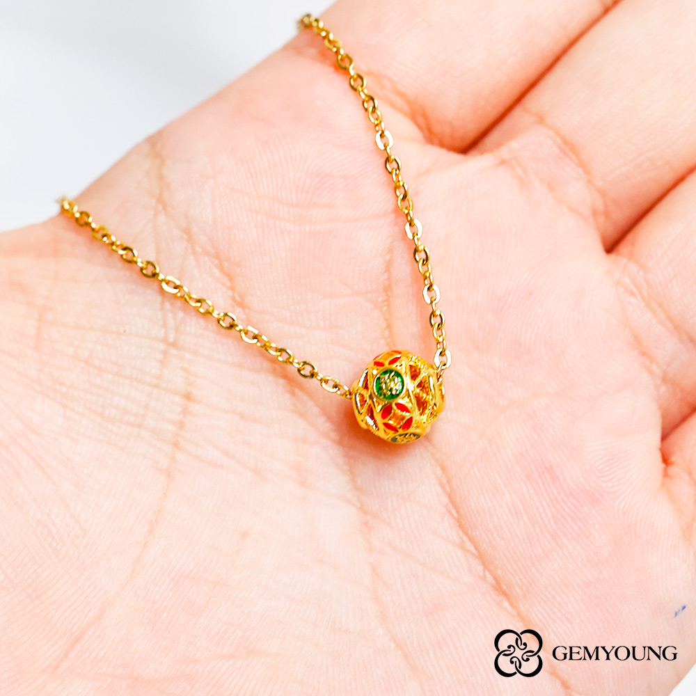 【JING YANG 晶漾】黃金墜子花球(0.09錢±0.05錢)附鍍金白鋼項鍊