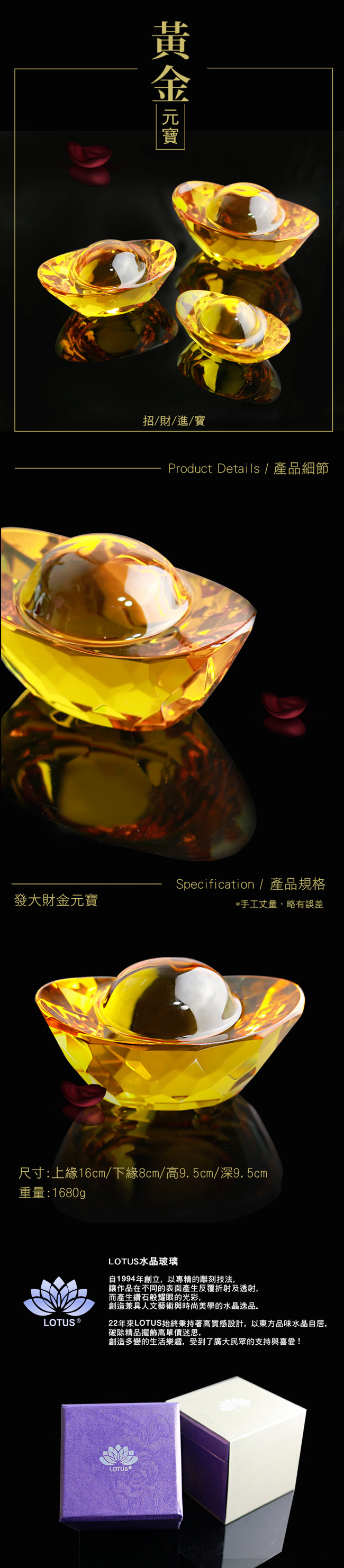 名稱:【LOTUS水晶】發大財金元寶16cm