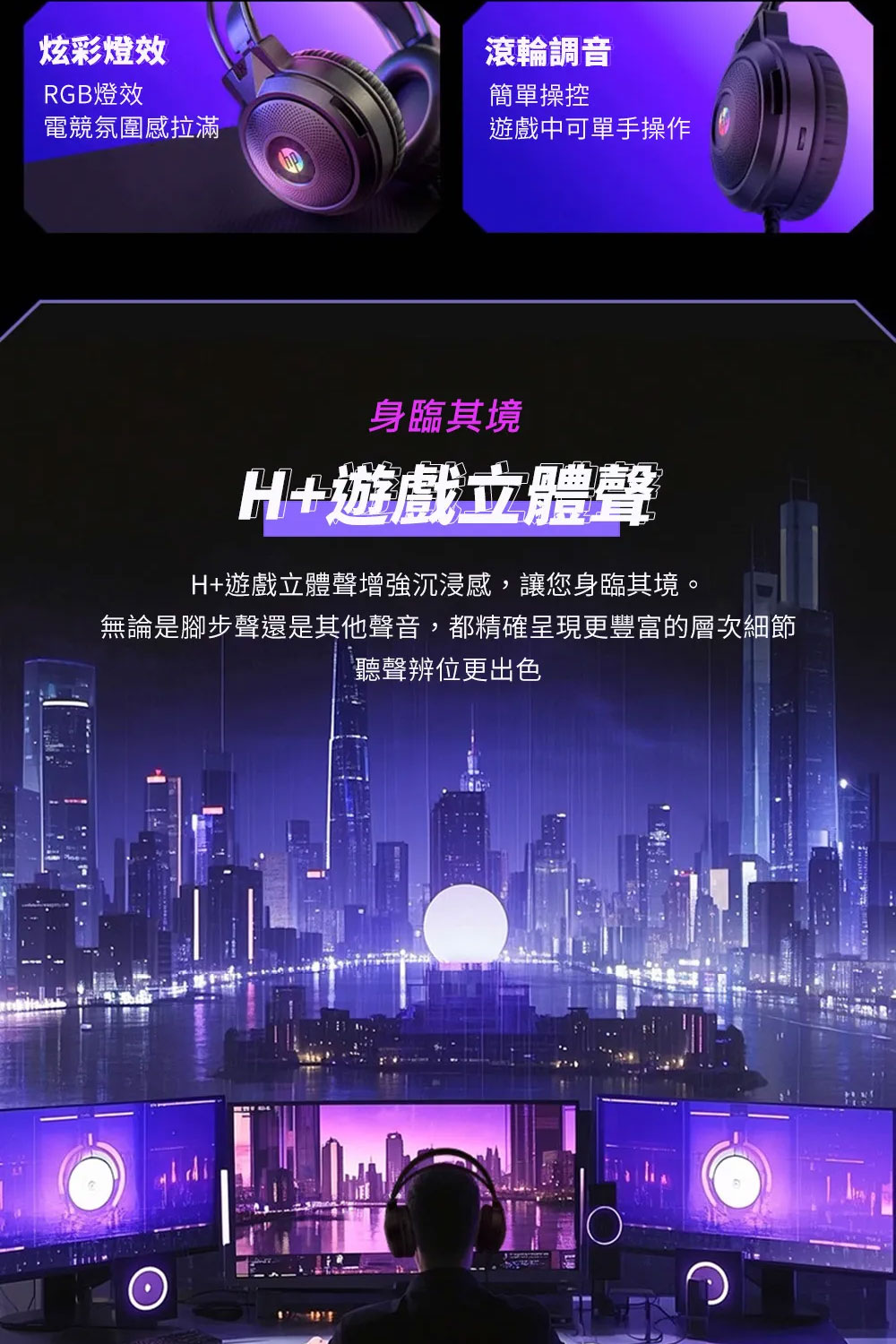 【HP 惠普】HP 惠普 DHE-H160U 4D 頭戴式炫光電競耳機 贈精美贈品G10