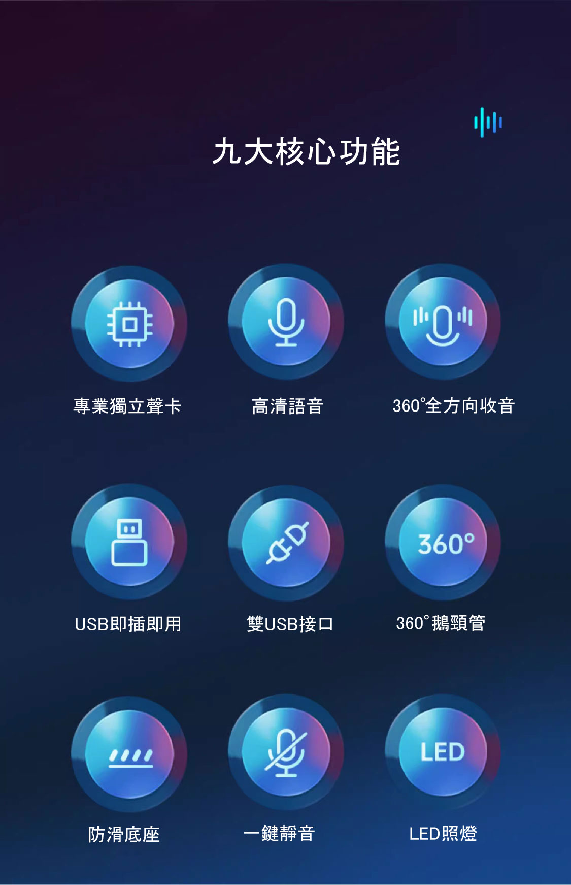 .360°全指向收音.電競遊戲、線上會議,適用多種場景.雙USB接孔,可外接供電