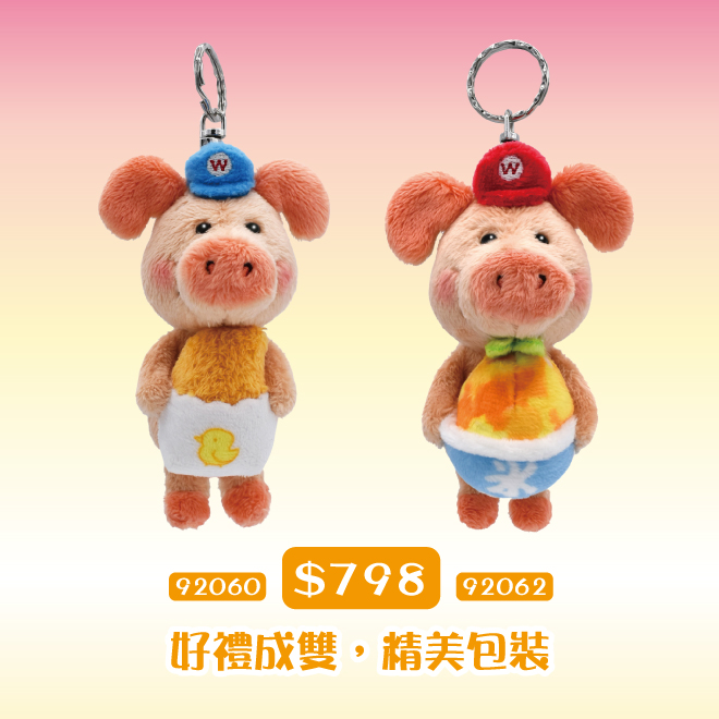 名稱:NICI 雞排和芒果冰小豬威比鑰匙圈組 - 雞排小豬威比鑰匙圈1個+芒果冰小豬威比鑰匙圈1個