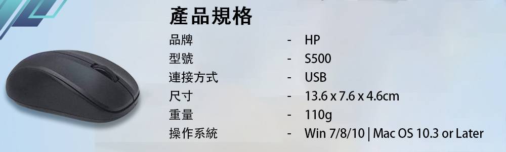 HP 惠普 S500 無線靜音滑鼠(黑色) 贈精美贈品G8