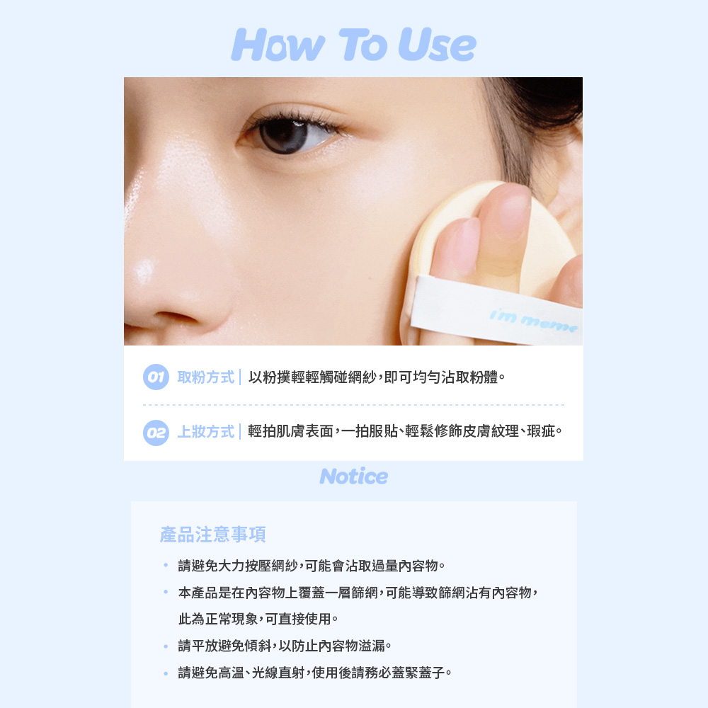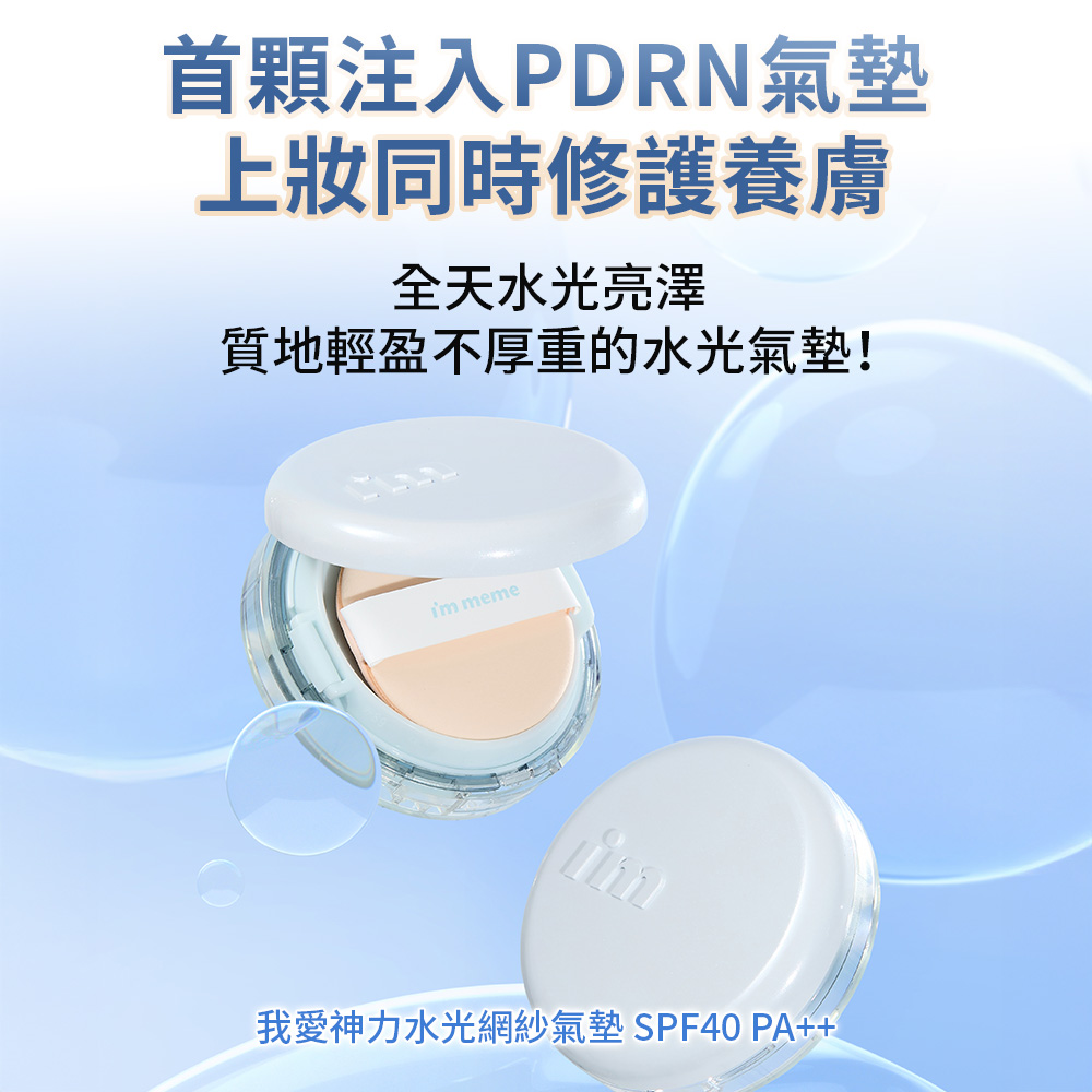 ◆品名: I'M MEME 我愛神力水光網紗氣墊+我愛奶霜唇頰水彩
