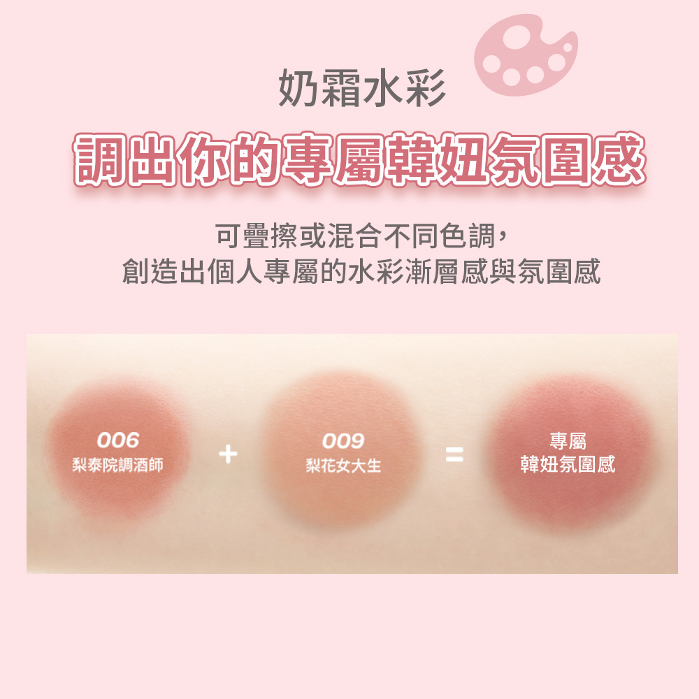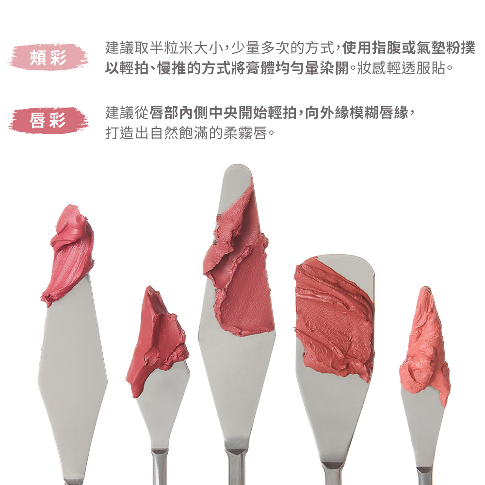 ❤奶霜抹醬滑順質地,白裡透紅超貼膚!奶霜抹醬般的柔霧質地清爽好暈染,上臉自然貼膚不黏膩、不結塊!只需要半粒米大小即可打造超自然紅暈感!