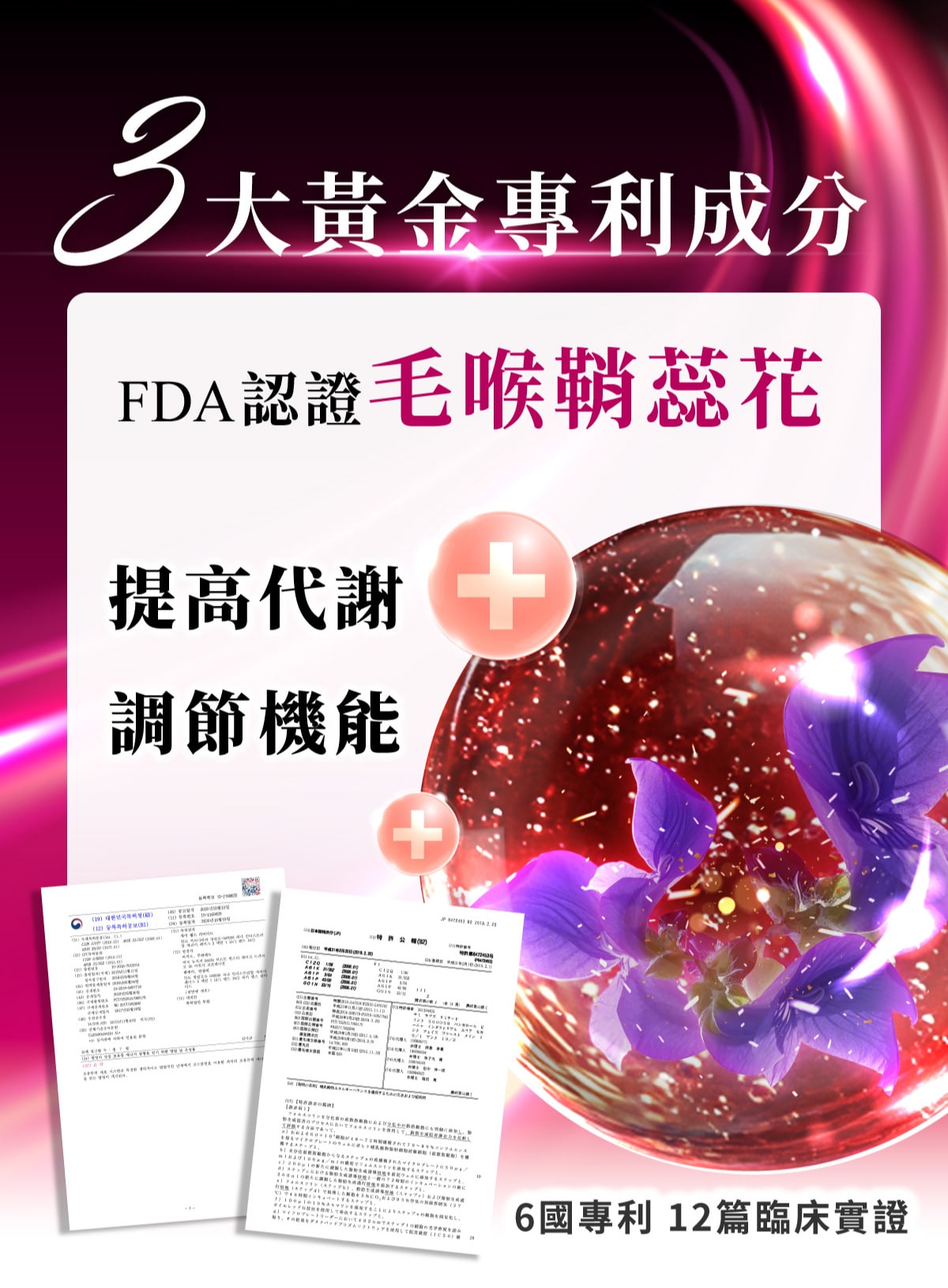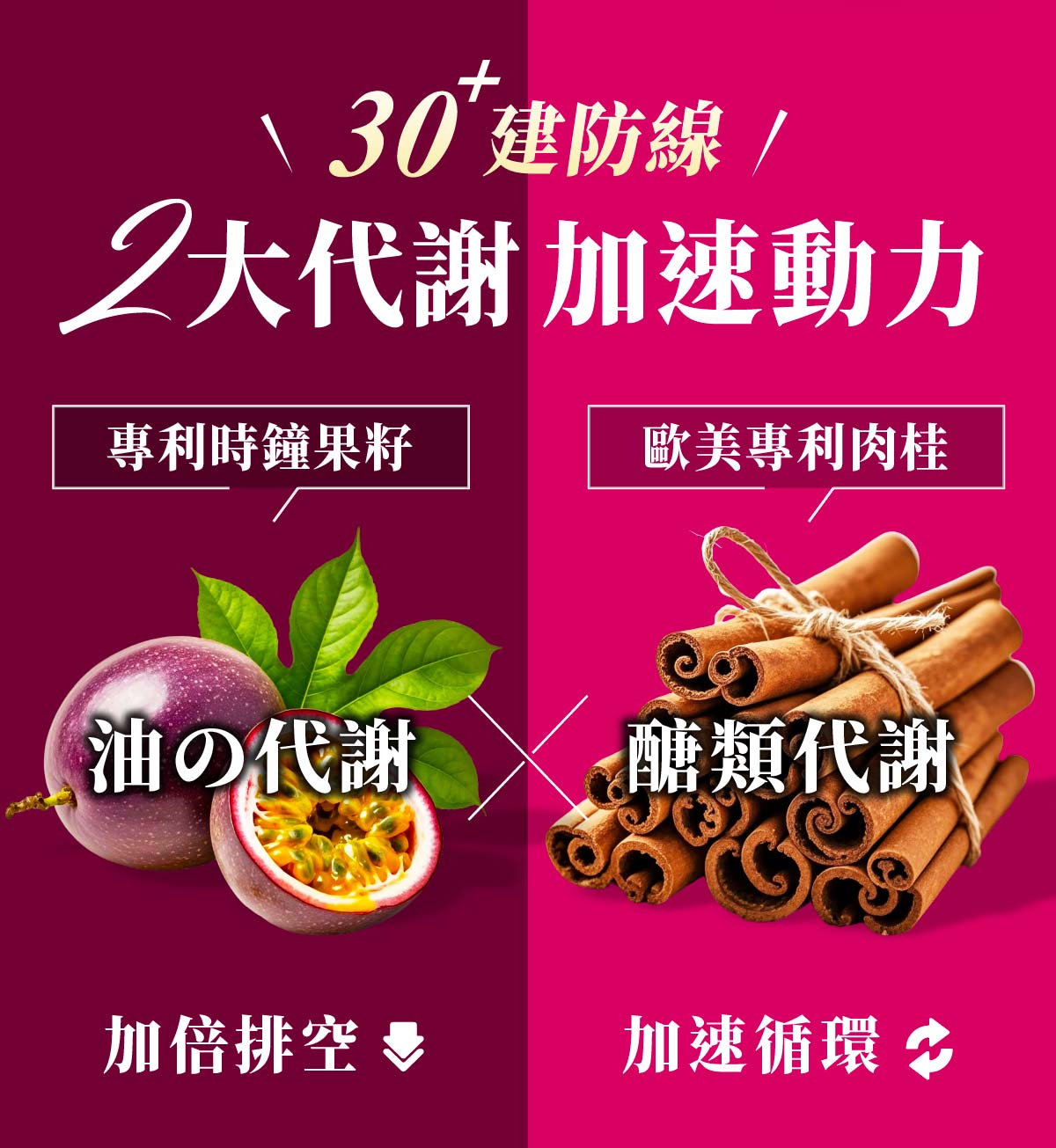 成分:綠茶萃取物(綠茶萃取、麥芽糊精) 、微結晶狀α-纖維素、武靴葉萃取粉(武靴葉萃取粉、麥芽糊精)、羊角豆萃取物(羊角豆萃取物、麥芽糊精) 、聚乙烯吡咯烷酮、瓜拿納萃取(瓜拿那萃取物、麥芽糊精、綠咖啡豆萃取) 、二氧化矽、反式白藜蘆醇、毛喉鞘蕊花萃取物(麥芽糊精、毛喉鞘蕊花萃取物)、時鍾果籽萃取物(糊精、時鍾果籽萃取物)、速溶支鏈氨基酸微囊粉(L-白胺酸、L-異白胺酸、L-α胺基異戊酸、卵磷脂)、綜合必須胺基酸(L-白胺酸、鹽酸L-二胺基己酸、L-異白胺酸、L-羥丁胺酸、L-α胺基異戊酸、L-蛋胺酸、L-苯丙胺酸、L-色胺酸、卵磷脂)、肉桂(桂皮)萃取物 (肉桂(桂皮)萃取物、糊精)、速可包覆鉻(吡啶甲酸鉻、預糊化米澱粉、脂肪酸蔗糖酯、向日葵卵磷脂、磷酸鈣、米粉)