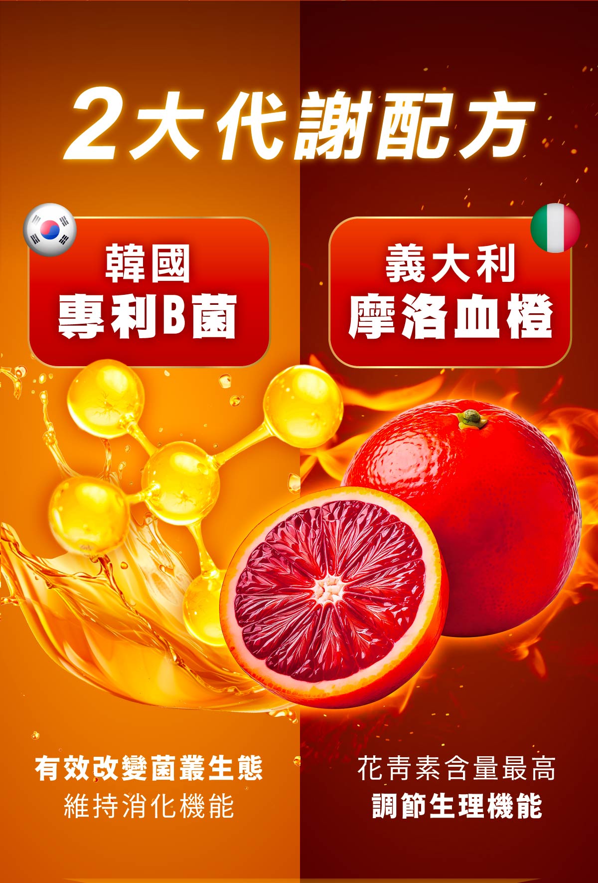 成分:魔凍血橙: 水、蔗糖、蘋果濃縮汁、綜合膠體(刺槐豆膠、鹿角菜膠、鼠尾草種子、武靴葉萃取、香料、羊角豆萃取、DL-蘋果酸、檸檬酸鈉、檸檬酸、蔗糖素(甜味劑)、荔枝綠茶多酚、熱封型短雙歧桿菌、酵母粉(含維生素B群)、荔枝籽萃取(荔枝籽萃取、麥芽糊精)、摩洛血橙濃縮粉、複合植物萃取(檸檬馬鞭草、洛神花)、藤黃果萃取、複合乳酸菌(玉米澱粉、嗜酸乳桿菌、羅伊氏乳酸桿菌、植物乳桿菌、綜合蔬果發酵(詳見外盒)、綜合蔬果發酵粉-C(麥芽糊精、鳳梨、番茄、葡萄、梅子、番石榴、檸檬、葡萄柚、甜橙、椪柑、胡瓜、南瓜、絲瓜、冬瓜、苦瓜、紅蘿蔔、地瓜葉、小黃瓜、大白菜、小白菜、高麗菜、青椒、芹菜、西洋芹、青江菜、巴西利、芥藍、豌豆、蘋果、百香果、青花椰菜、馬鈴薯、老薑、地瓜、甜菜根、山藥、香菇、空心菜、紅龍果、茼蒿、菠菜、甜椒、茄子、筊白筍、菜豆、敏豆、紅鳳菜、球莖甘藍、牛蒡、莧菜、萵苣、扁蒲、秋葵、金針菇、酵母菌、A菌 s、保加利亞乳酸桿菌、胚芽乳酸桿菌、嗜熱多醣鏈球菌、嗜酸芽孢乳酸菌、比菲德氏菌、凝結芽孢乳酸菌、LP菌、砂糖)、大麥苗粉、小麥苗粉、綜合蔬果發酵粉-D、洛神花萃取粉、山桑子萃取粉、山楂萃取粉、西洋牡荊萃取粉)、草本植物複方粉末、綜合穀物粉(黑糯米、蕎麥、大麥、黑藜麥、紅藜麥、白藜麥、小麥胚芽、薏仁、玉米))、沙棘果萃取粉(沙棘果萃取物、麥芽糊精)、黑棗萃取粉、芝麻萃取物、荷葉萃取粉、鴻喜菇子實體萃取粉、紅棗萃取粉、銀耳萃取粉、燕麥纖維、玫瑰花瓣萃取物、決明子萃取粉、肉桂萃取粉、百合萃取粉、酸棗仁萃取粉、山竹萃取粉、明日葉、猴頭菇子實體萃取粉、葛根萃取粉、蕁麻根萃取粉、朝鮮薊粉、枸杞萃取粉、洋甘菊萃取物、蒲公英萃取粉、黑大蒜粉、羅漢果萃取粉、玉米鬚萃取粉、南瓜籽萃取粉、紫花苜蓿、桔梗萃取粉、淮山萃取粉、五味子萃取粉、抹茶粉、香檬汁粉、馬告粉、香蜂草萃取粉、玫瑰果萃取粉、桑葉萃取粉、檸檬馬鞭草萃取粉、木鱉果萃取粉、杜松子萃取粉、南非醉茄萃取粉、黃精萃取粉、小竹薑、紫錐菊萃取粉、十字珍珠草萃取粉、川七萃取粉、紅薑黃、刺五加萃取粉、葫蘆巴萃取粉、納豆發酵粉、啤酒花萃取粉、穿心蓮萃取粉、熟地萃取粉、當歸萃取粉、黃耆萃取粉、西洋參萃取粉、天麻萃取粉、柑橘果膠(果膠、葡萄糖)、☆啶甲酸鉻