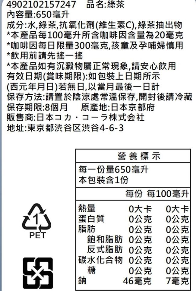 規格:650ml/瓶保存期限:8個月,有效期限依外包狀標示產地:日本