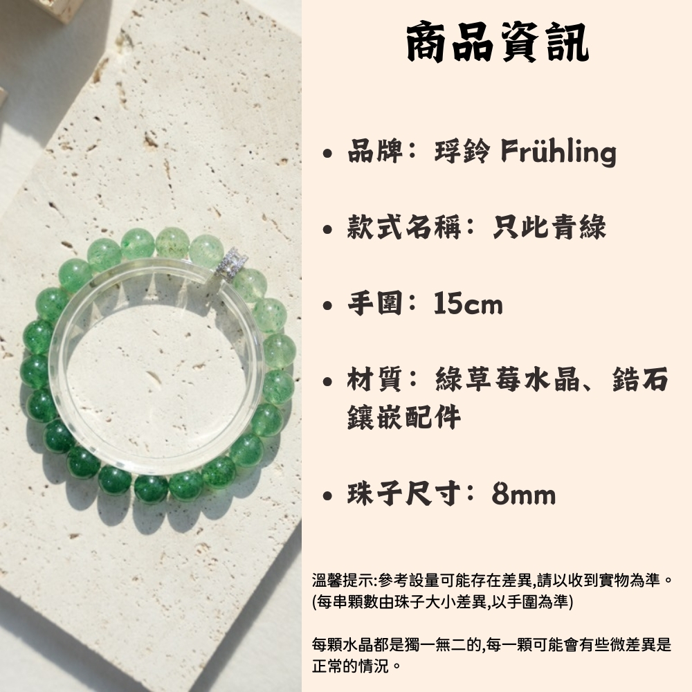 商品內容:品牌名稱:琈鈴 Frühling產品名稱:只此青綠 青曜和境手環