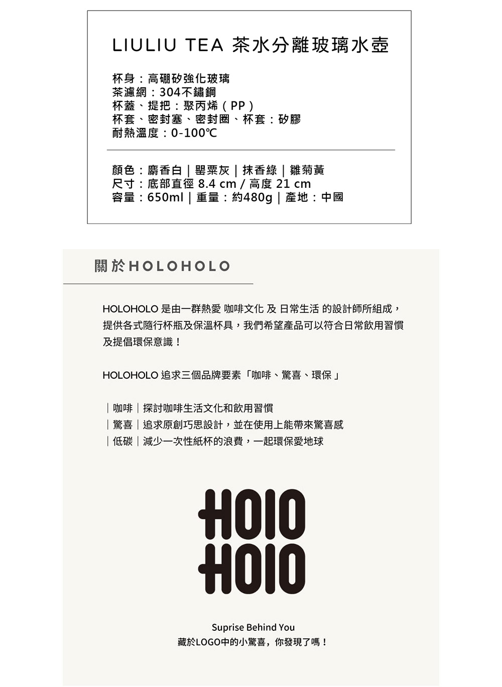 品茶族完美好杯【Holoholo】LIULIU TEA 茶水分離玻璃壺 - 650ml (共4色可選) 水瓶座生日好禮 冷泡茶 泡茶茶葉 茶水分離 完美過濾 防漏設計 直飲杯 品茶族 | NearMe | 線上送禮平台『獨家支援 收禮者改選禮物』