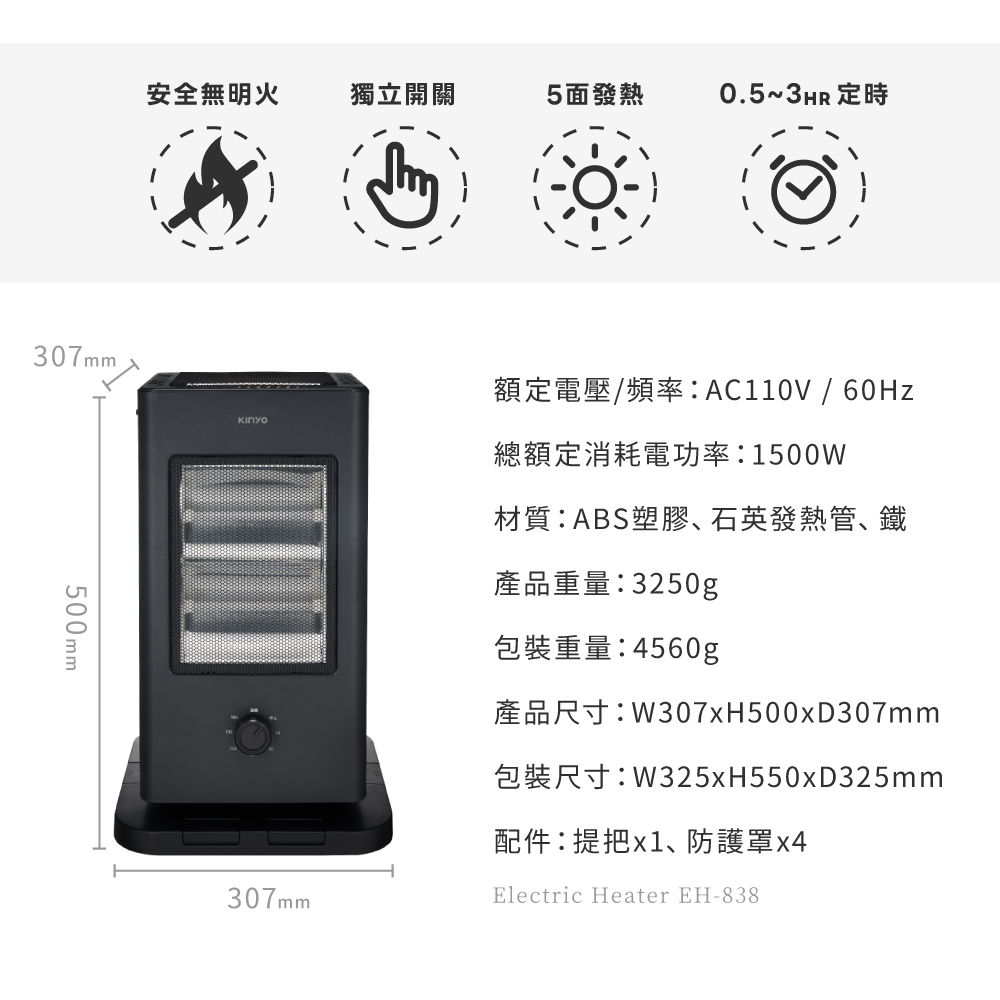 傾倒自動斷電+溫控過熱保護+全機防火阻燃材質