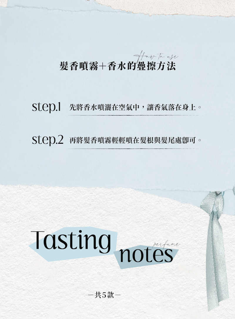 • 也可以當髮香噴霧,噴灑於髮尾處,增加體香味