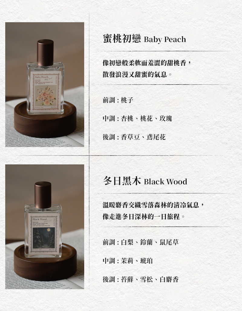 八款香味從果香、花香、木質調延伸從甜、暖、清新到深邃你可以依心情選擇一天的香氣這是一系列能融進日常的香水輕盈、溫柔,却帶著確實的存在感