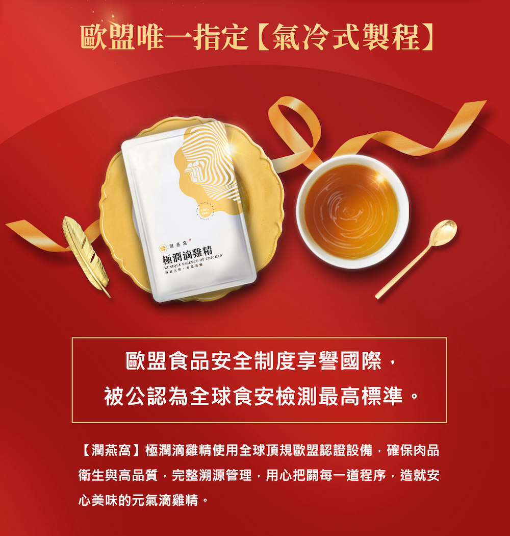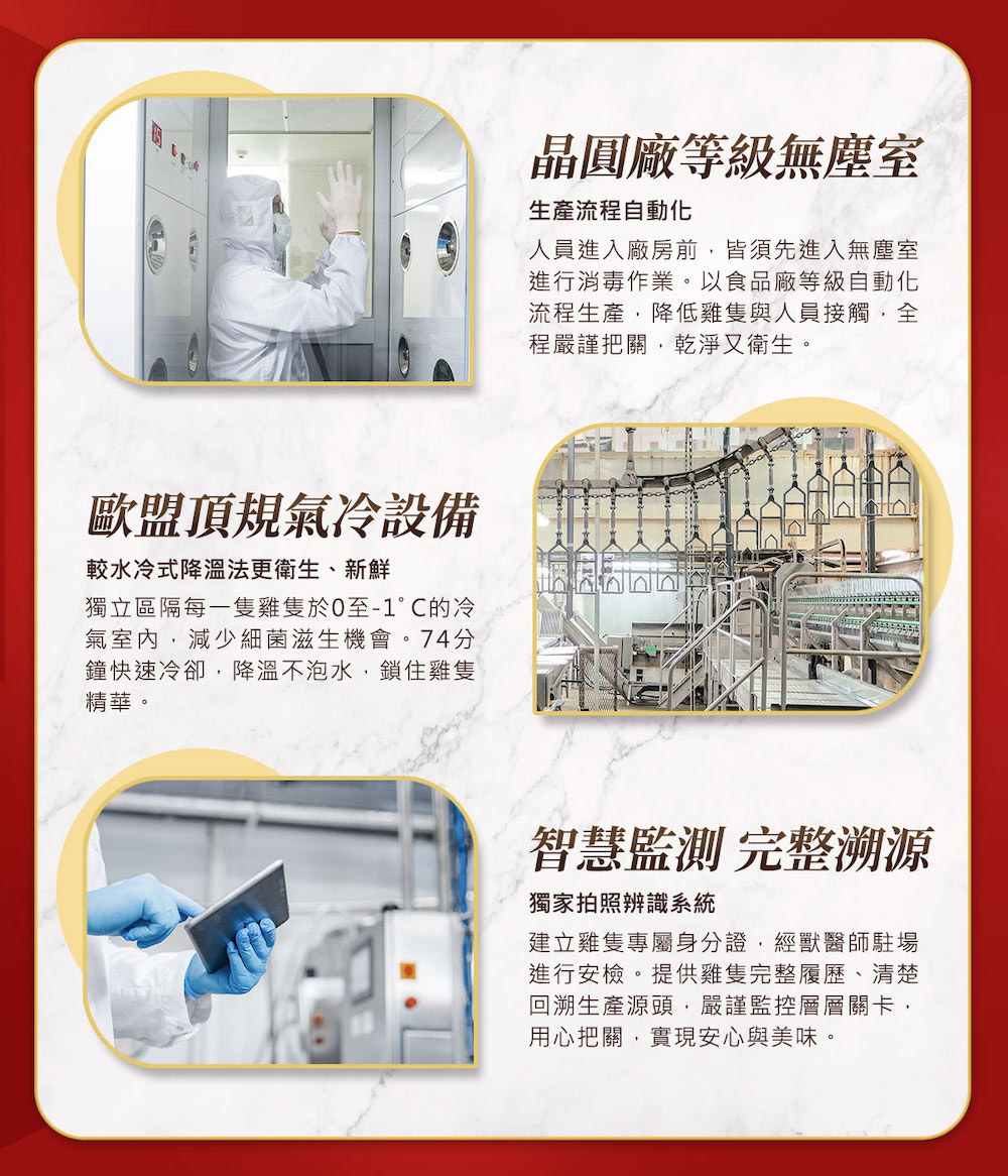 100%使用歐盟規格氣冷雞,鎖住精華營養。