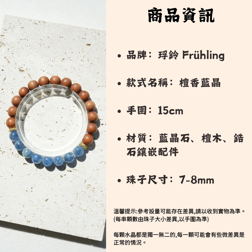商品內容:品牌名稱:琈鈴 Frühling產品名稱:檀香藍晶 靛澄檀晶手環
