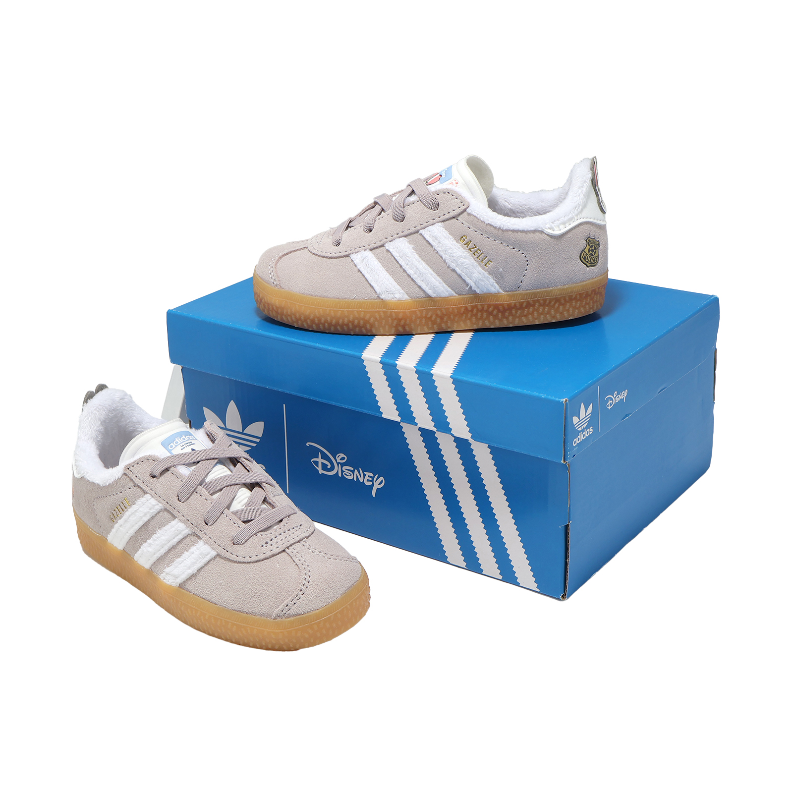 品牌: ADIDAS型號: JQ1344品名: Gazelle CF EL I版型: 版型正常* 與迪士尼經典動畫 - 玩具總動員聯手合作,鞋舌上的翠絲印花圖案與翠絲皮褲相同花紋的三條線設計。
