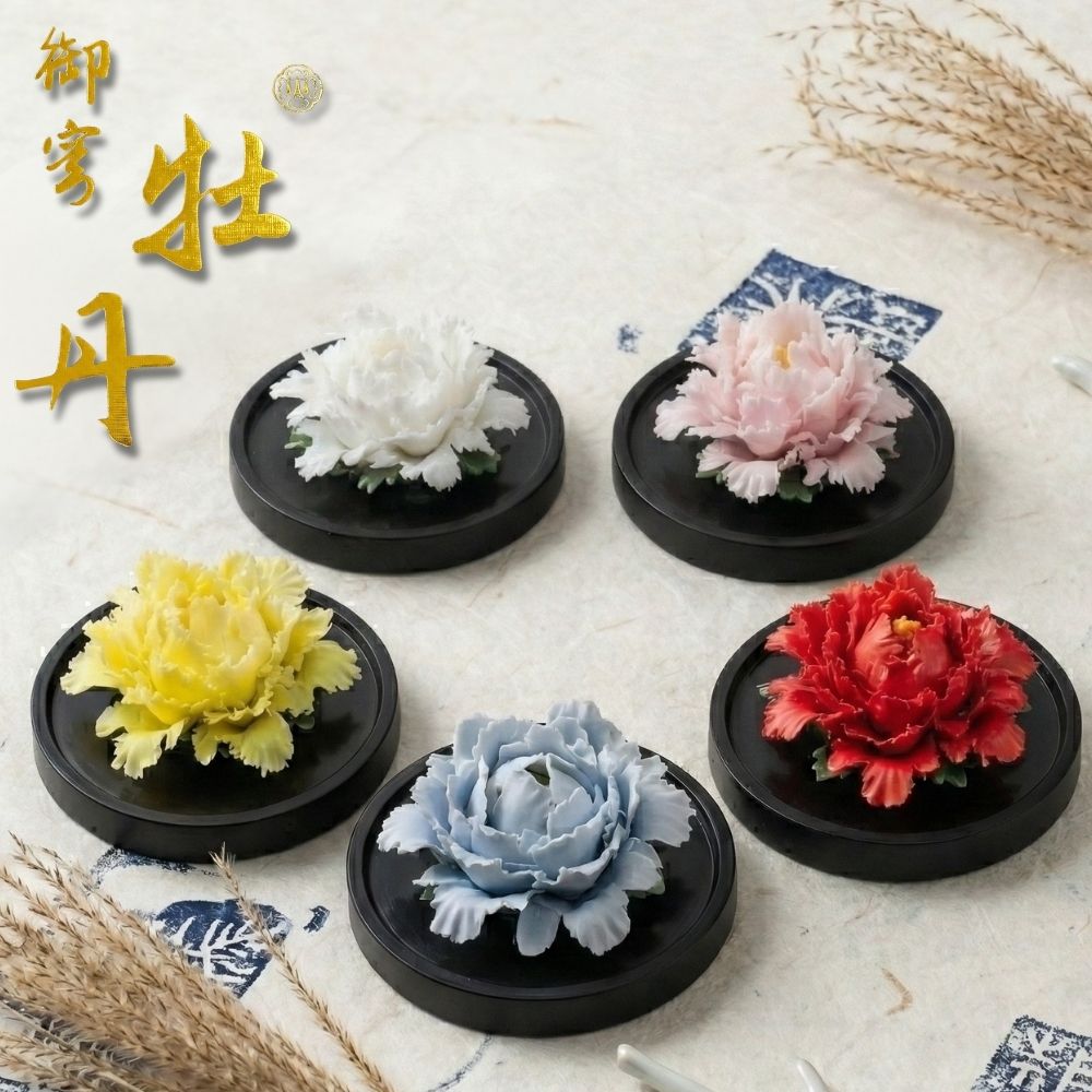 以象徵富貴吉祥的牡丹為靈感,手工捏製陶瓷牡丹花,