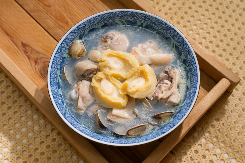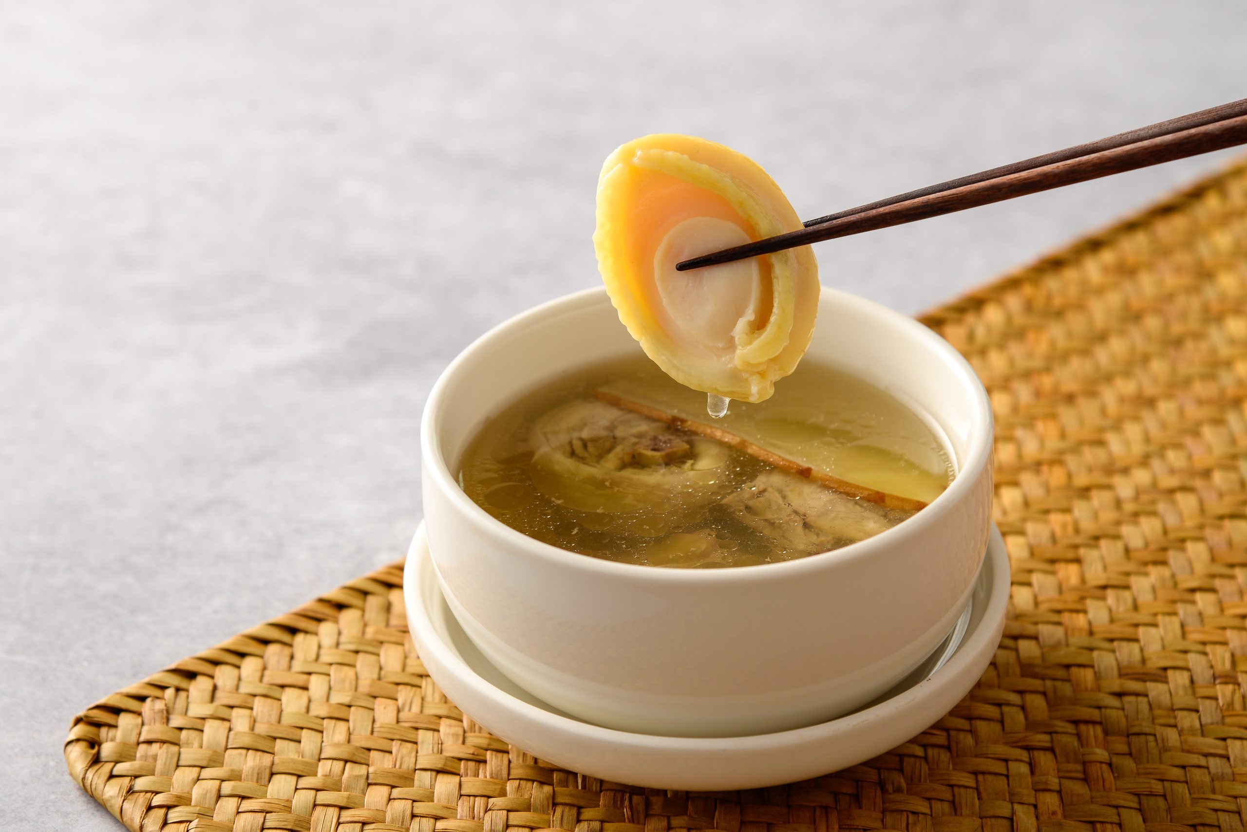 清湯吉品鮑魚嚴選吉品鮑,形如元寶,鮑枕邊高豎、色澤灰淡細緻,入口濃香爽口,彈嫩中帶著甘甜,入菜延伸多種港式料理