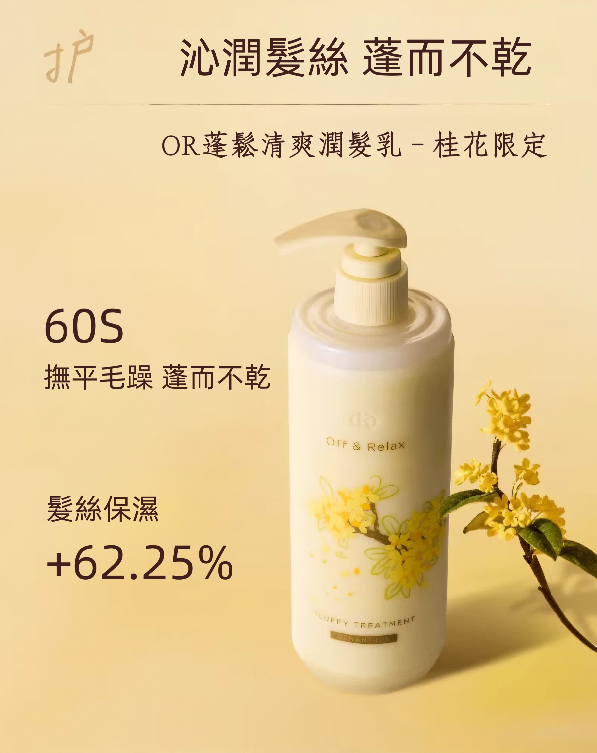 桂花的溫柔花香,搭配OFF&RELAX一貫的頭皮平衡配方