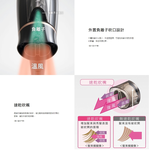 時尚晶鑽黑外觀搭載速乾吹嘴保濕負離子-吹頭髮同時為秀髮保濕1400W.大風量-快速吹乾好省時