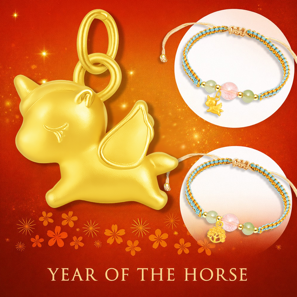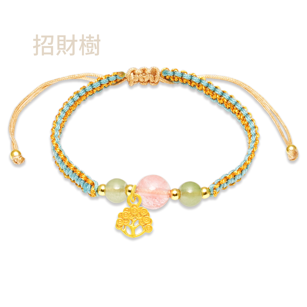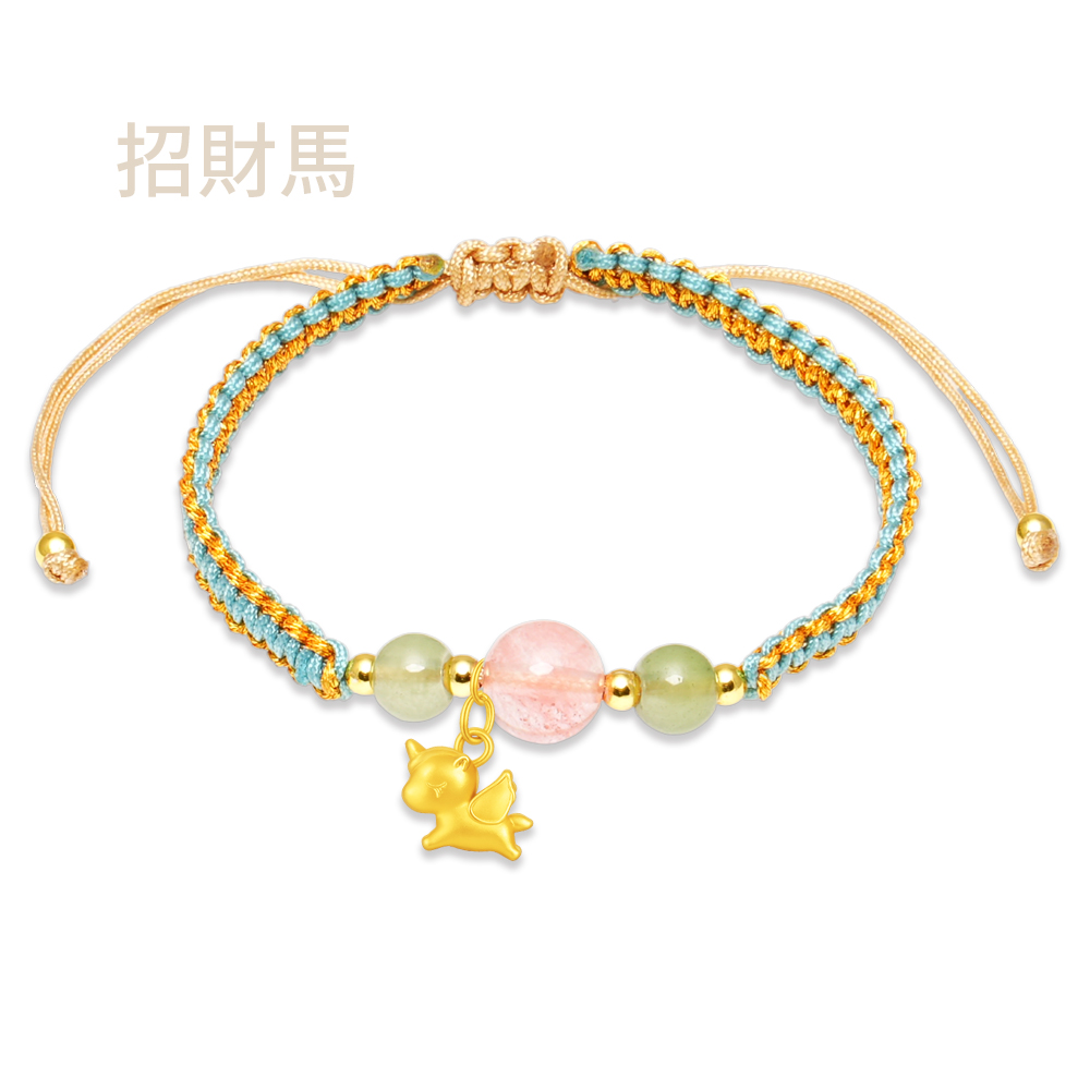 名稱:黃金墜可調節編織手繩 純金999 財運馬上來 約重0.07錢±0.02 隨機贈送馬年御守 (馬年 過年 送禮)