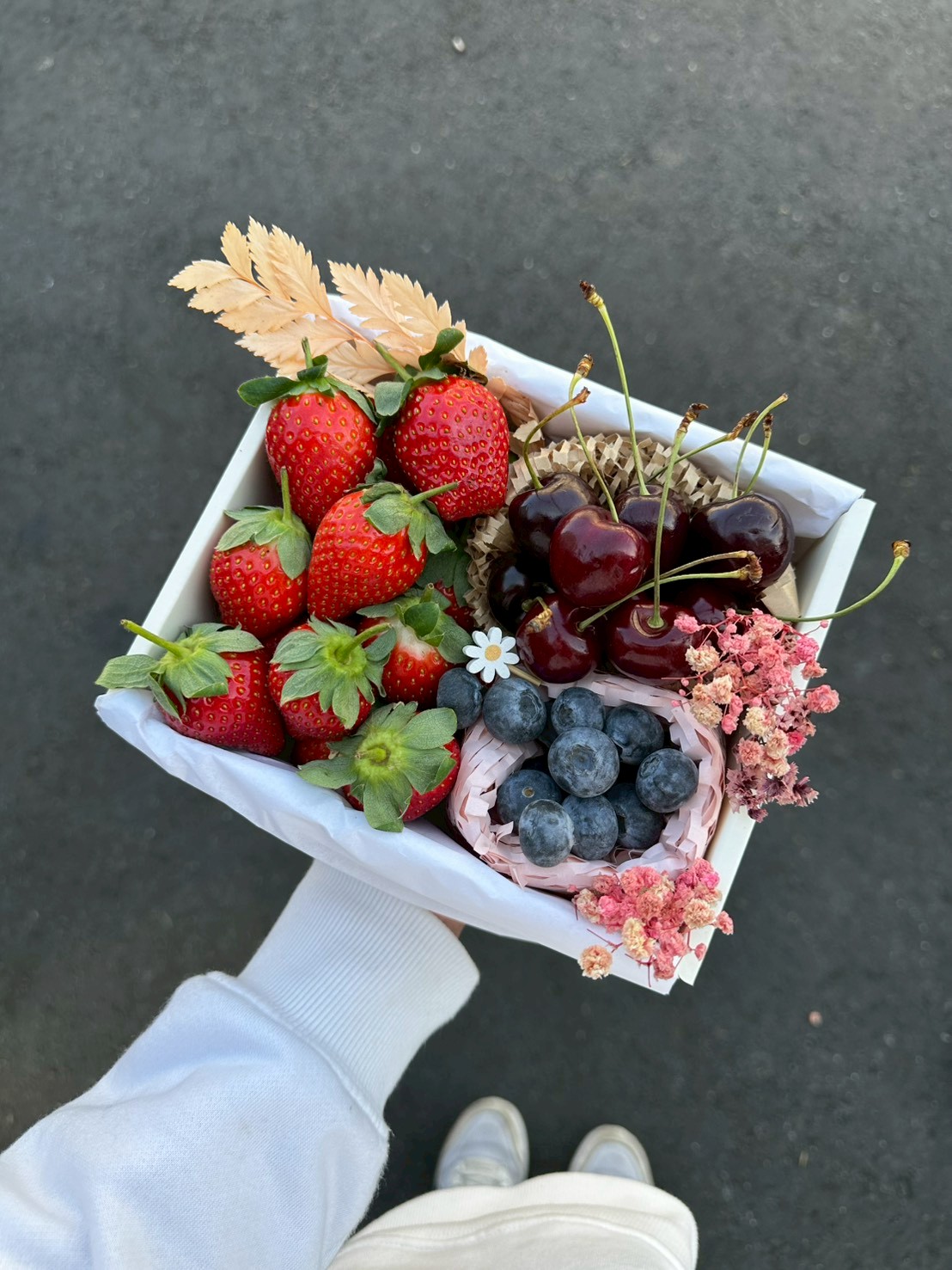 • 台灣草莓,香氣十足、甜而不膩• 祕魯藍莓,酸甜平衡、多汁• 送禮體面大方• 出貨前逐顆人工嚴選,品質穩定 • 冷藏配送,完整保留櫻桃鮮甜風味