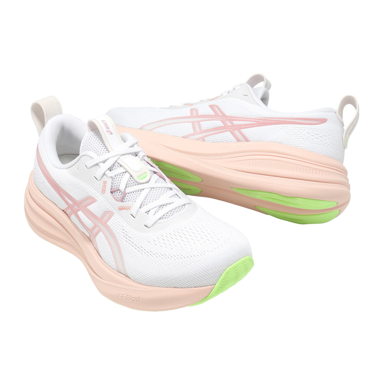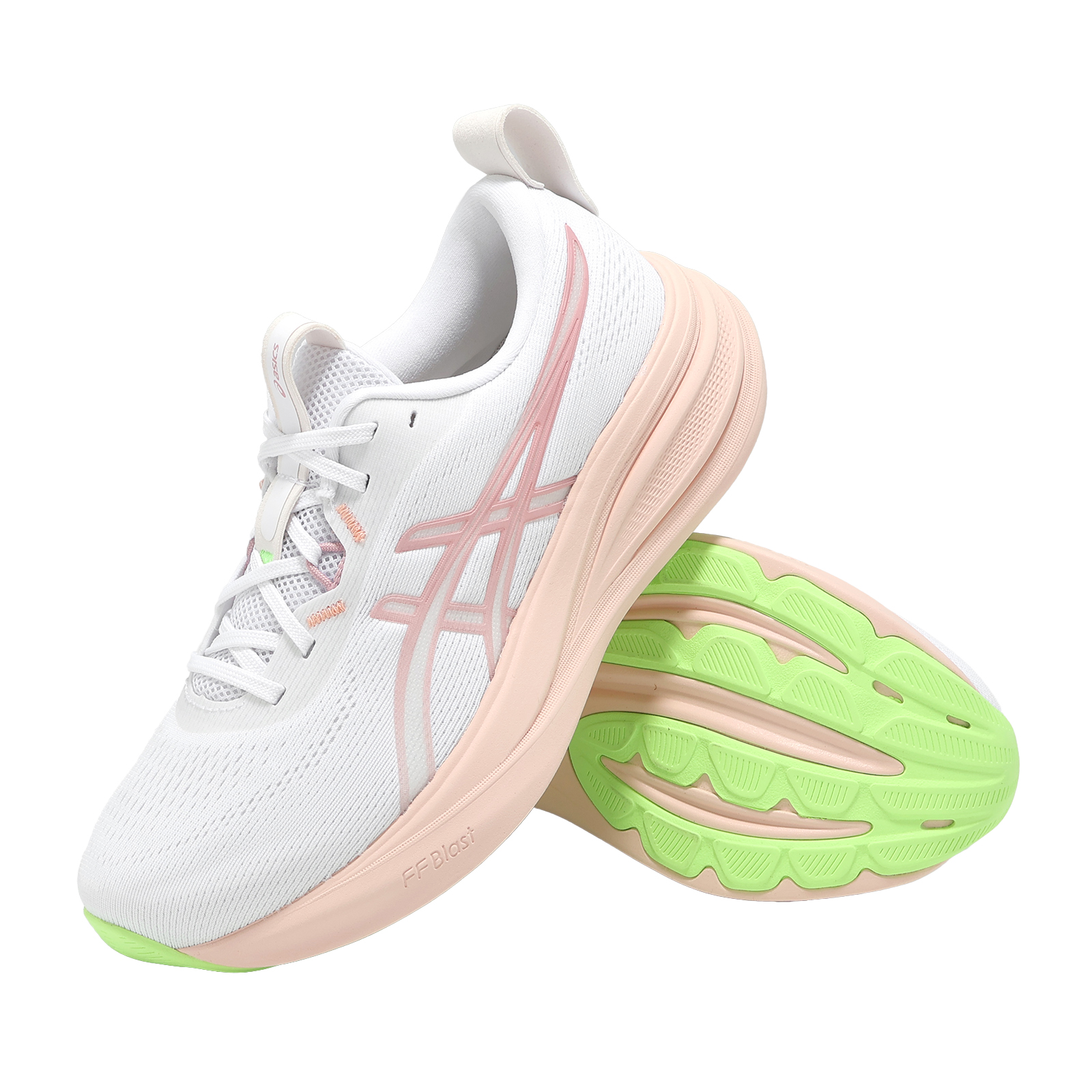 * 中底採用增厚2mm的 FF BLAST 泡棉和 GEL 技術,提供兼具緩衝且柔軟的腳感。