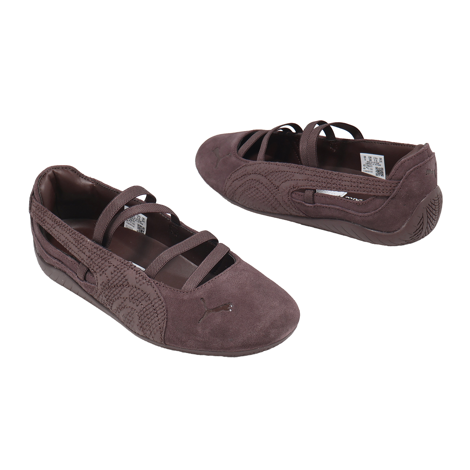 * 保留 PUMA 經典 SPEEDCAT 的俐落輪廓,重新演繹成具有時尚感的芭蕾鞋款,鞋面加入具彈性的橫向鬆緊帶,提升包覆感與穩定性。