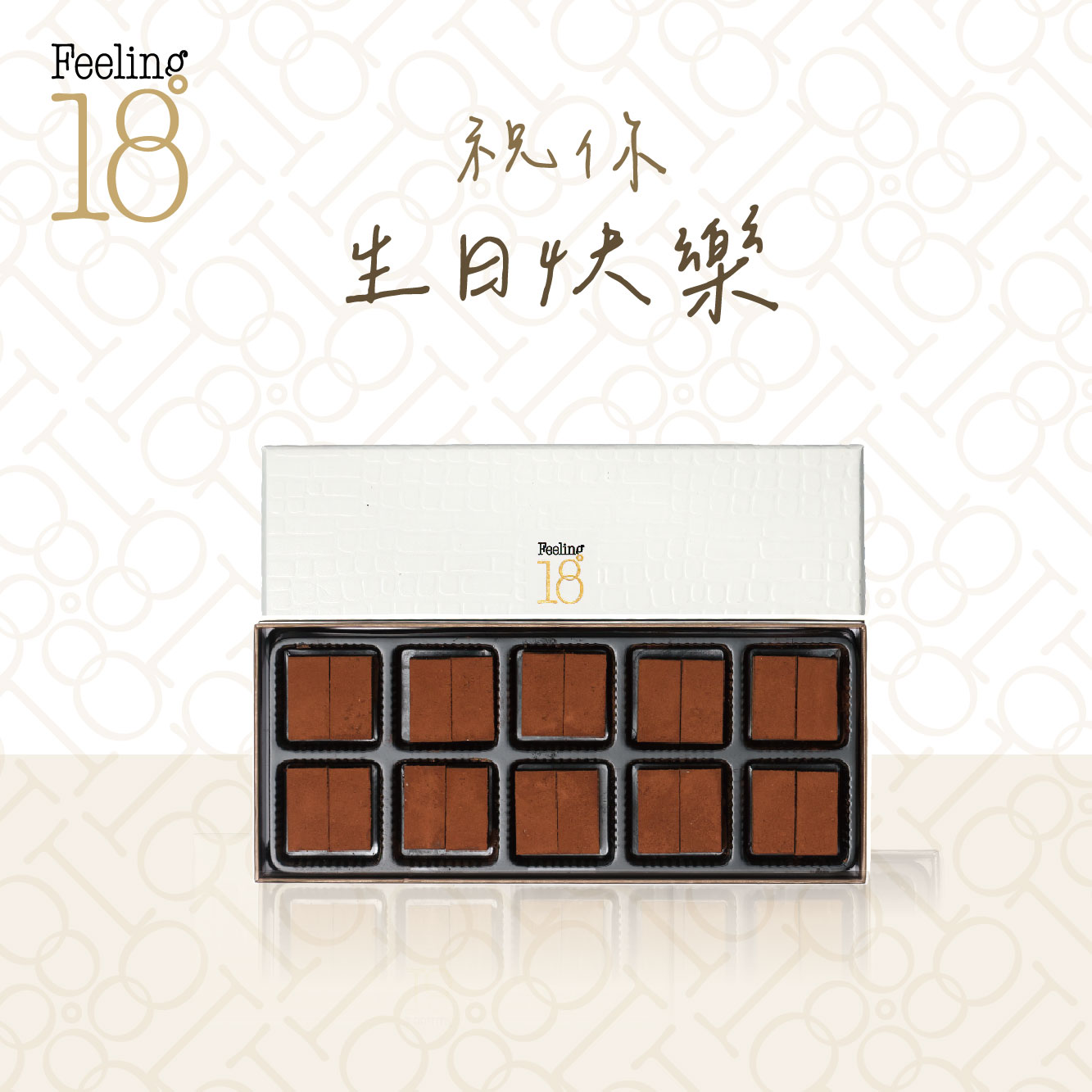 |商品內容|名稱:【Feeling18】75%初戀生巧克力(20入)成份:黑巧克力、鮮奶油、麥芽、奶油、香草籽、可可粉、白蘭地酒(堅持南投酒廠生產)重量:140公克/盒 (20入),本品含酒為提香。保存方式:冷藏保存,嚐鮮期限7日,保存期限14日