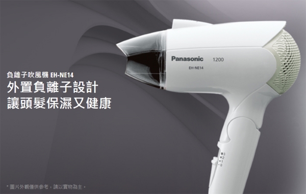 型號:EH-NE14-W商品尺寸:高約21.1*寬14.3*深5.7cm外箱尺寸:長14*寬9.5*深23cm商品重量:313g 外箱重量:535g電壓:110V 耗電量:1200W BSMI:R31417保固:1年產地:泰國
