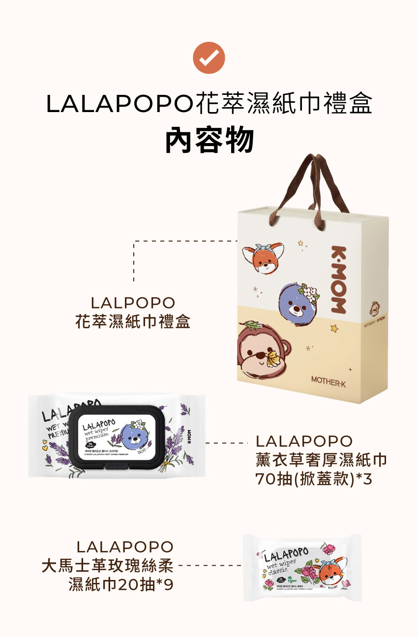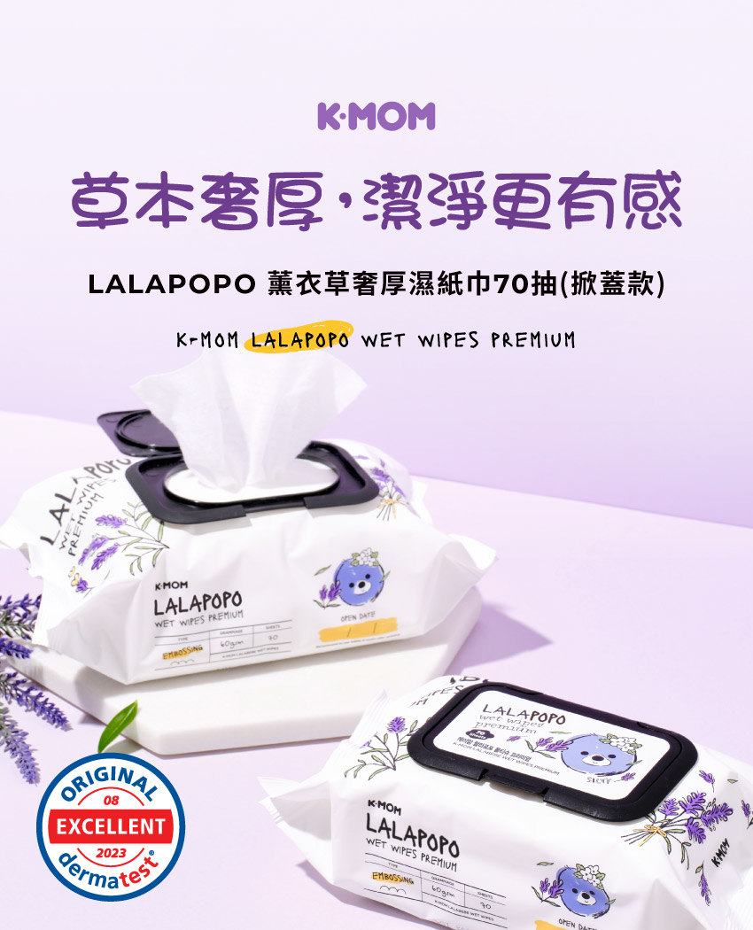 濕紙巾商品摘要:LALAPOPO 薰衣草奢厚濕紙巾70抽(掀蓋款) x 3包奢厚 × 有機 × 低敏安心