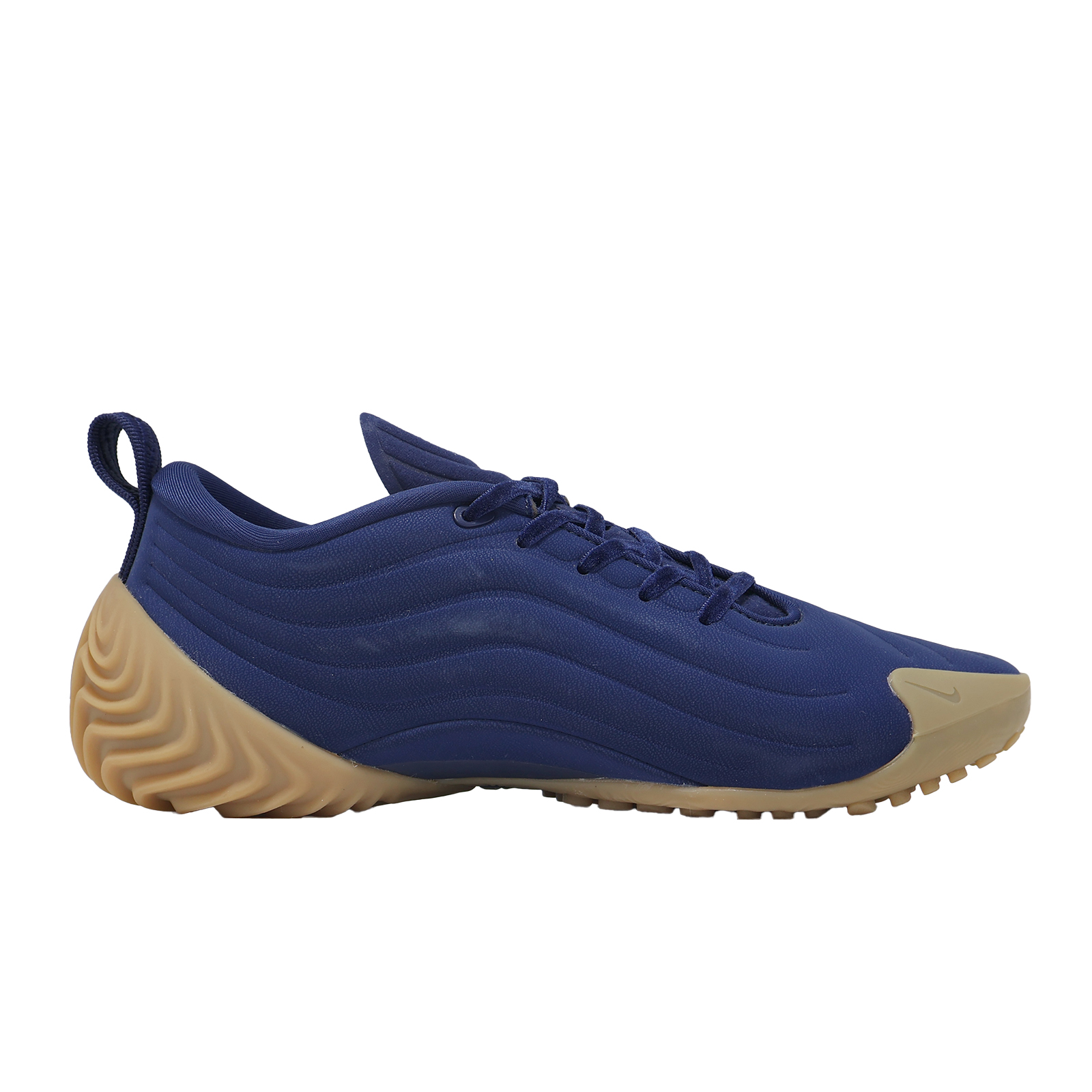 * 最吸睛的是非對稱鞋帶系統與奢華的天鵝絨鞋帶,極簡的 Swooosh Logo 僅在鞋側前緣小巧點綴。