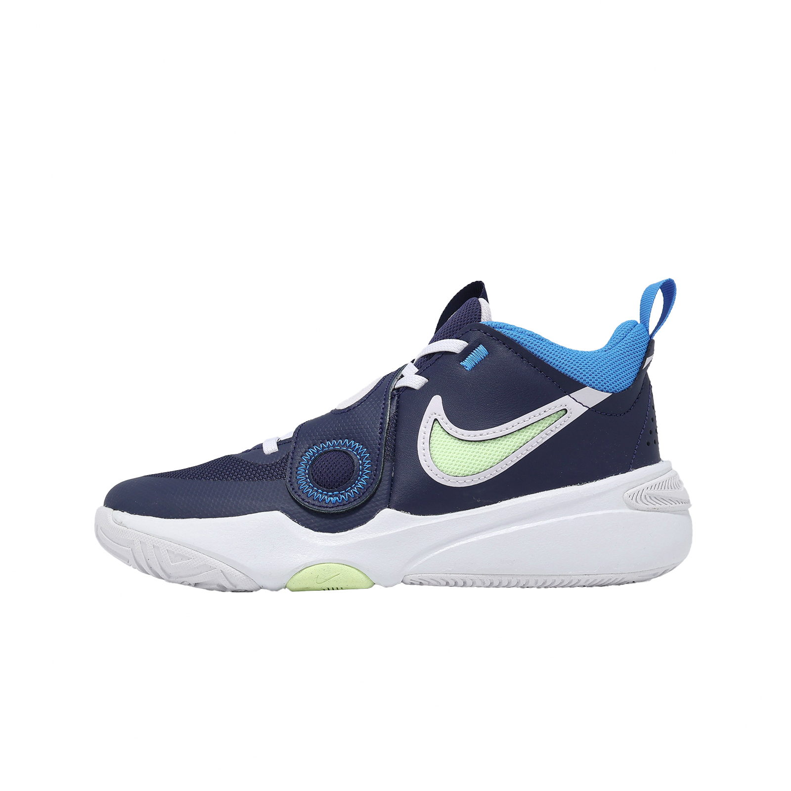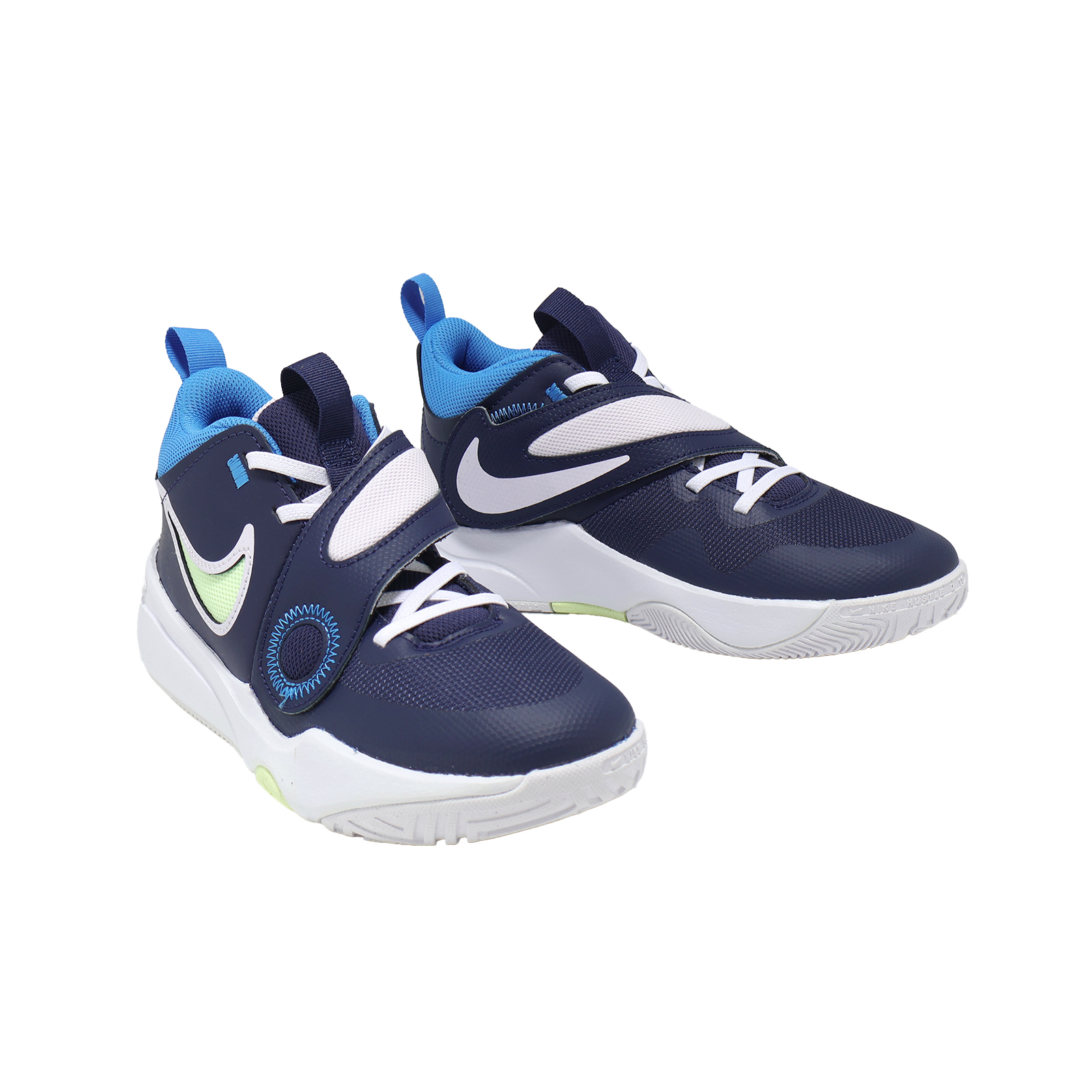 品牌: NIKE型號: DV8996-401品名: Team Hustle D 11 GS版型: 版型正常* 鞋身搭配魔鬼氈及加寬鞋口設計,可使孩童方便快速穿脫,且能隨時調整合適的包覆效果與舒適性。